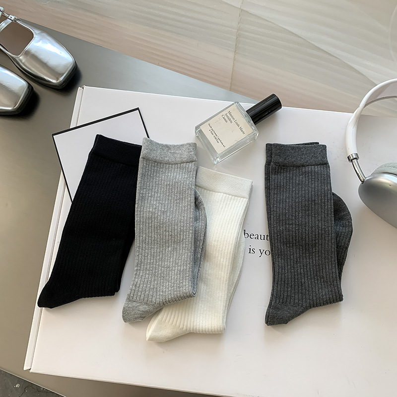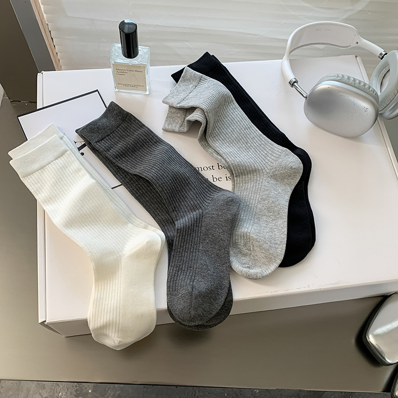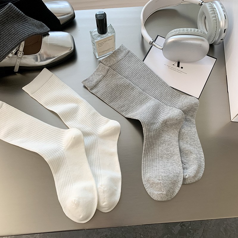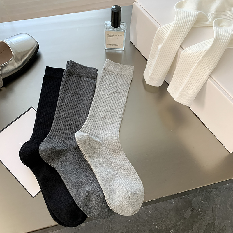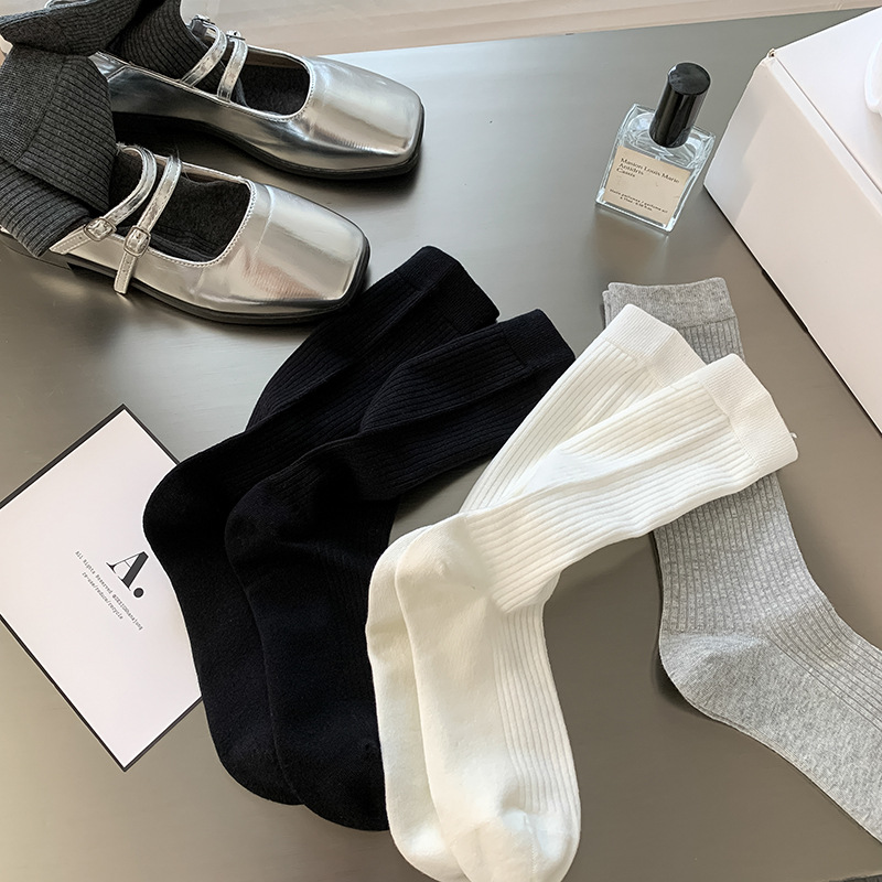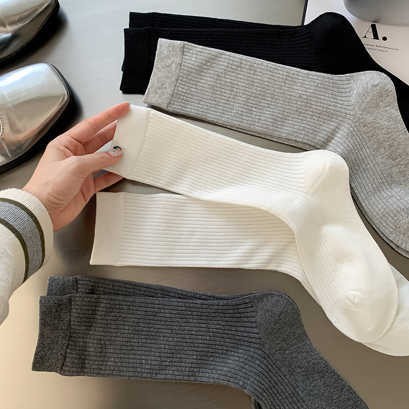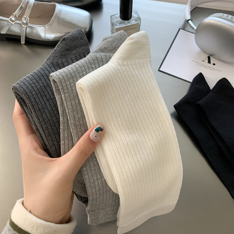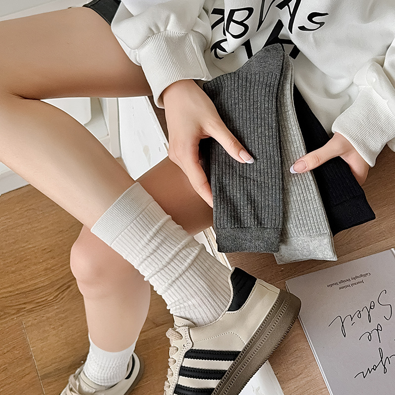 Ankora Red Socks 여성용 중간 길이 양말 빗질면 수직 스트라이프 스택 양말 인터넷 유명 대학 스타일 여성 양말 스타킹스토어 가기