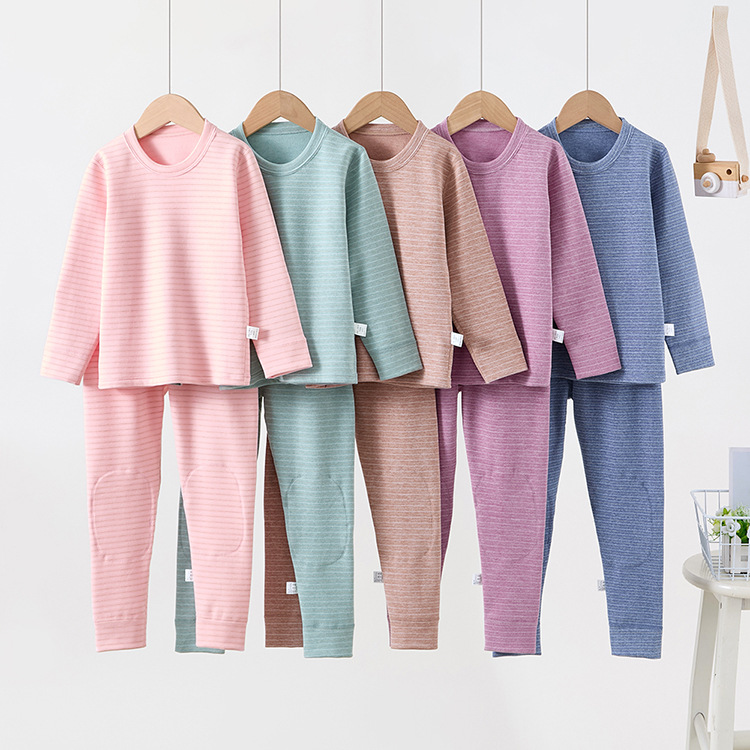 소년 소녀를위한 어린이 벨벳 따뜻한 세트 가을 및 겨울 두꺼운 속옷베이스 홈 옷 가을 옷 바지 파자마 세대