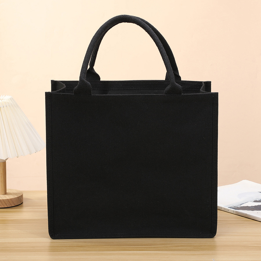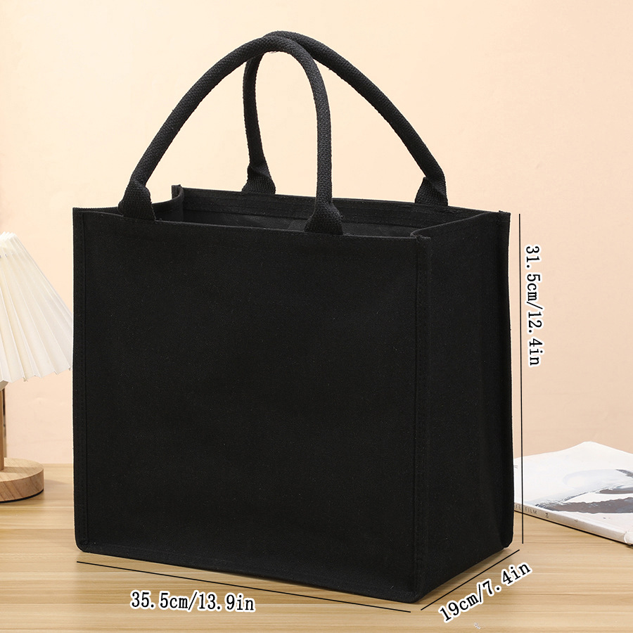 남성과 여성을위한 캐주얼 간단한 두꺼운 캔버스 토트 백 블랙 스테레오 대용량 내구성 쇼핑백 토트 백