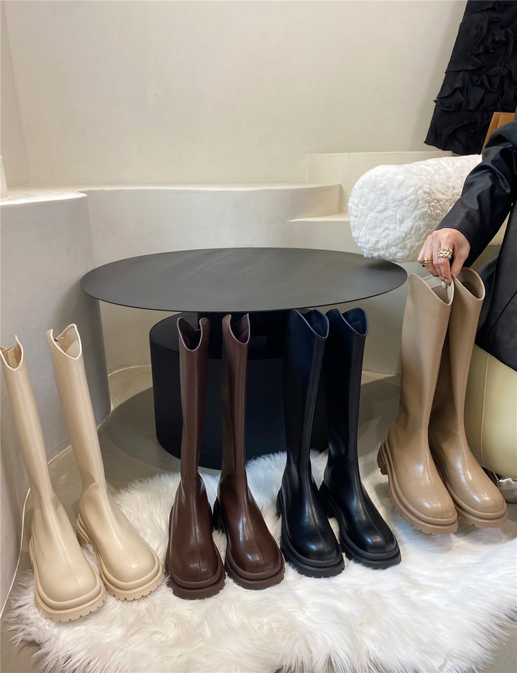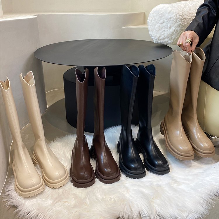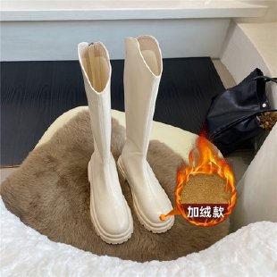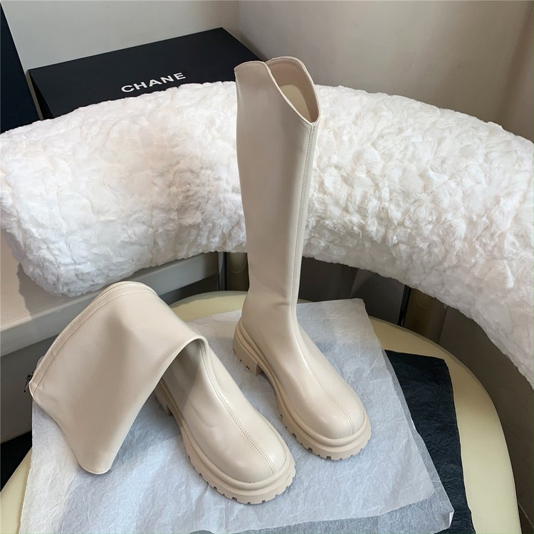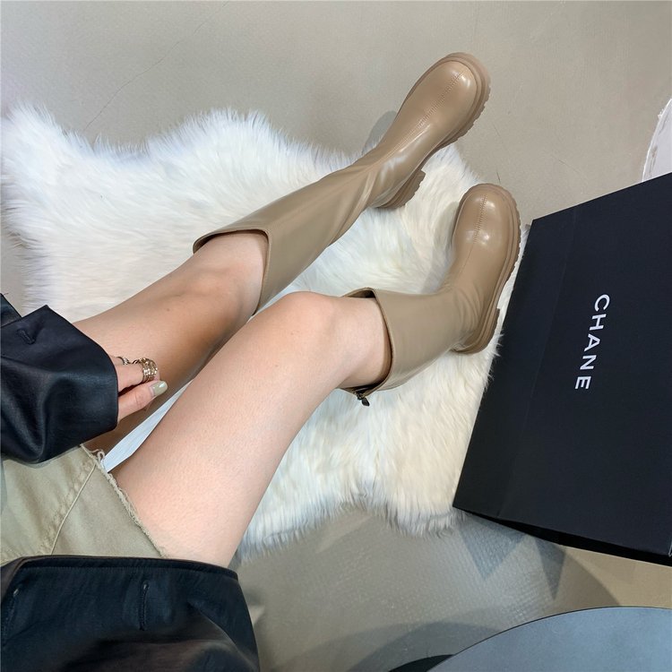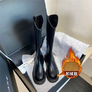 V-mouth 작은 두꺼운 바닥 마틴 부츠 여성의 2024 가을과 겨울 새로운 라운드 헤드 백 지퍼이지만 무릎 부드러운 가죽 부츠스토어 가기
