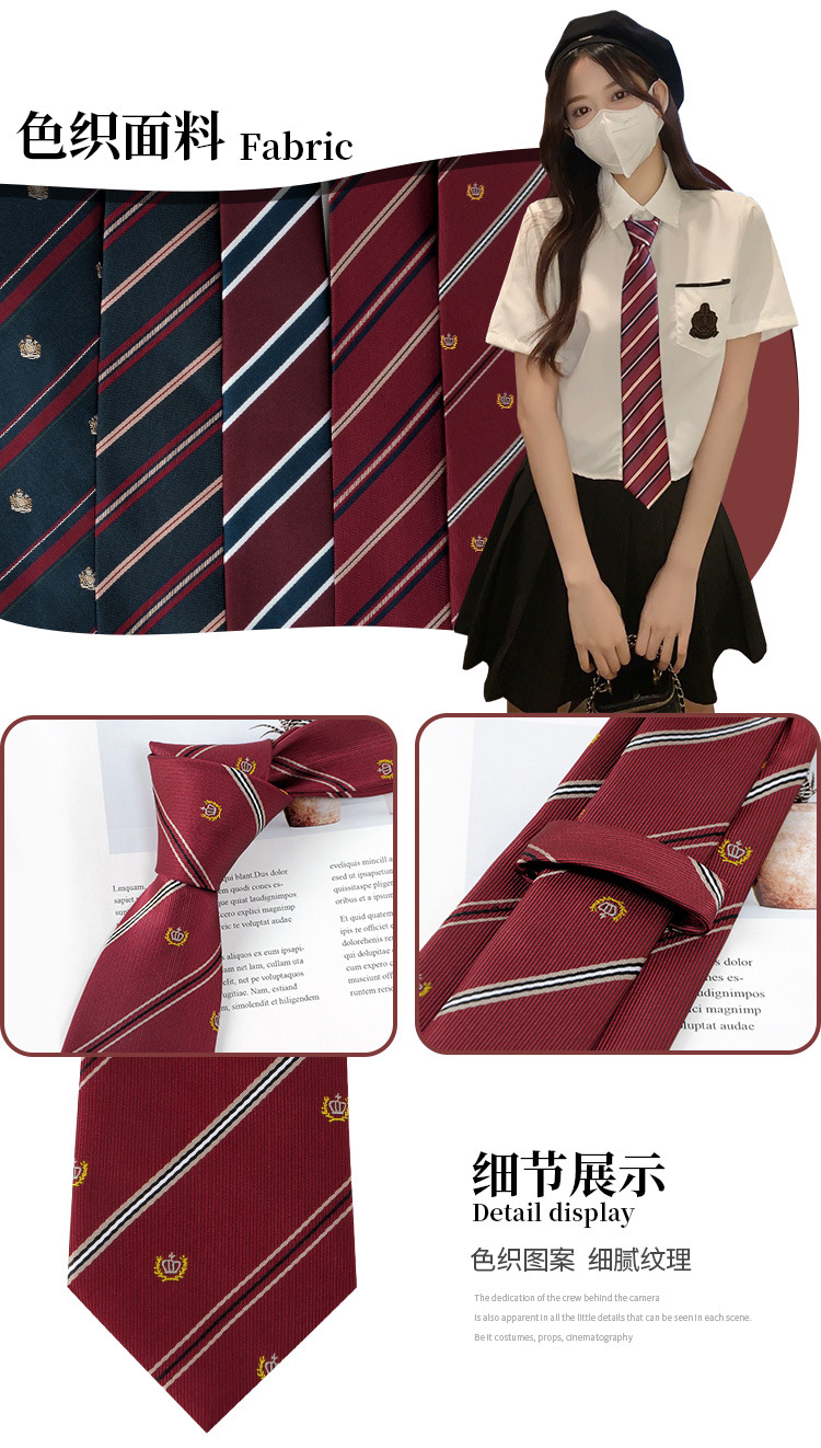일본 JK 오리지널 스쿨 넥타이 여성 스트라이프 핸드 타이 작은 레드 칼리지 스타일 셔츠 액세서리 버건디 활 넥타이스토어 가기