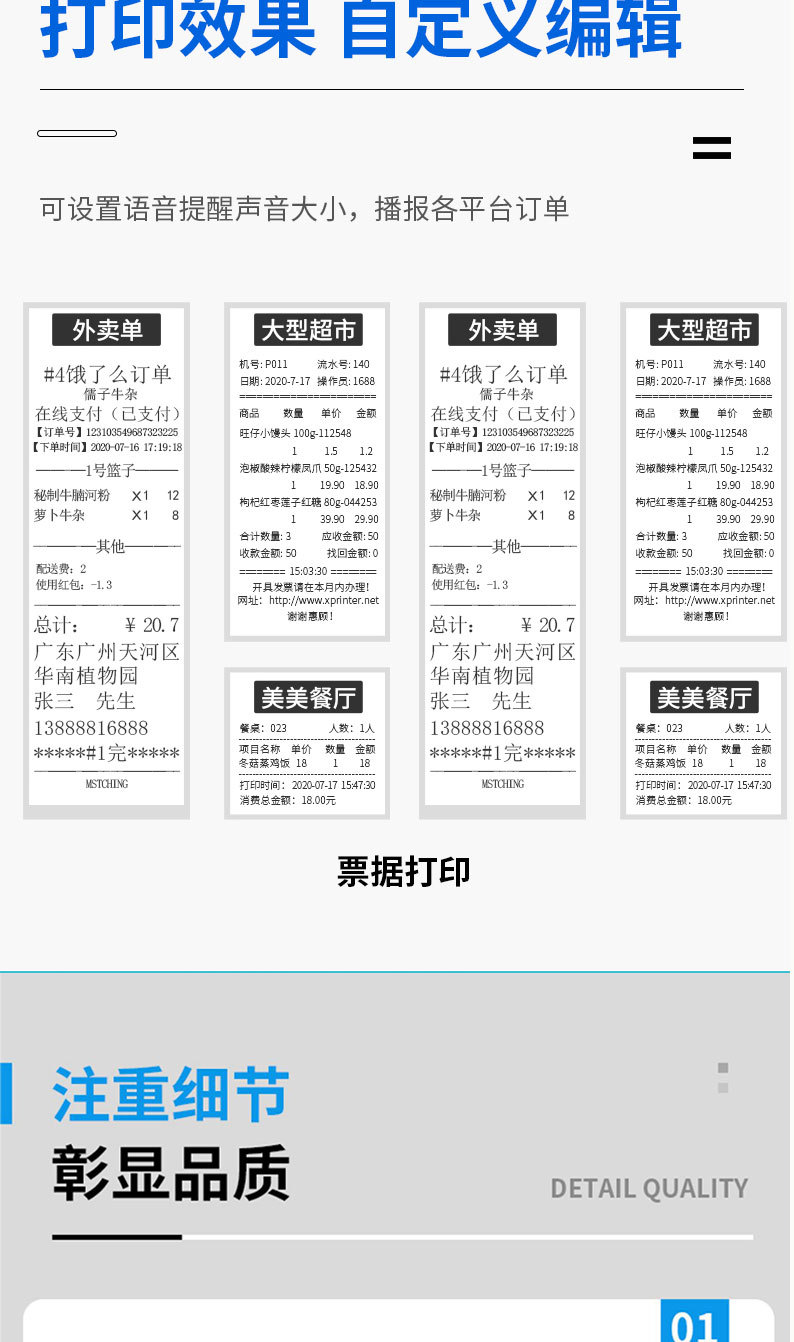 클라우드 프린터 58mm 자동 주문 접수 대형 기어 커터 실시간 음성 라벨 기계 영수증 기계