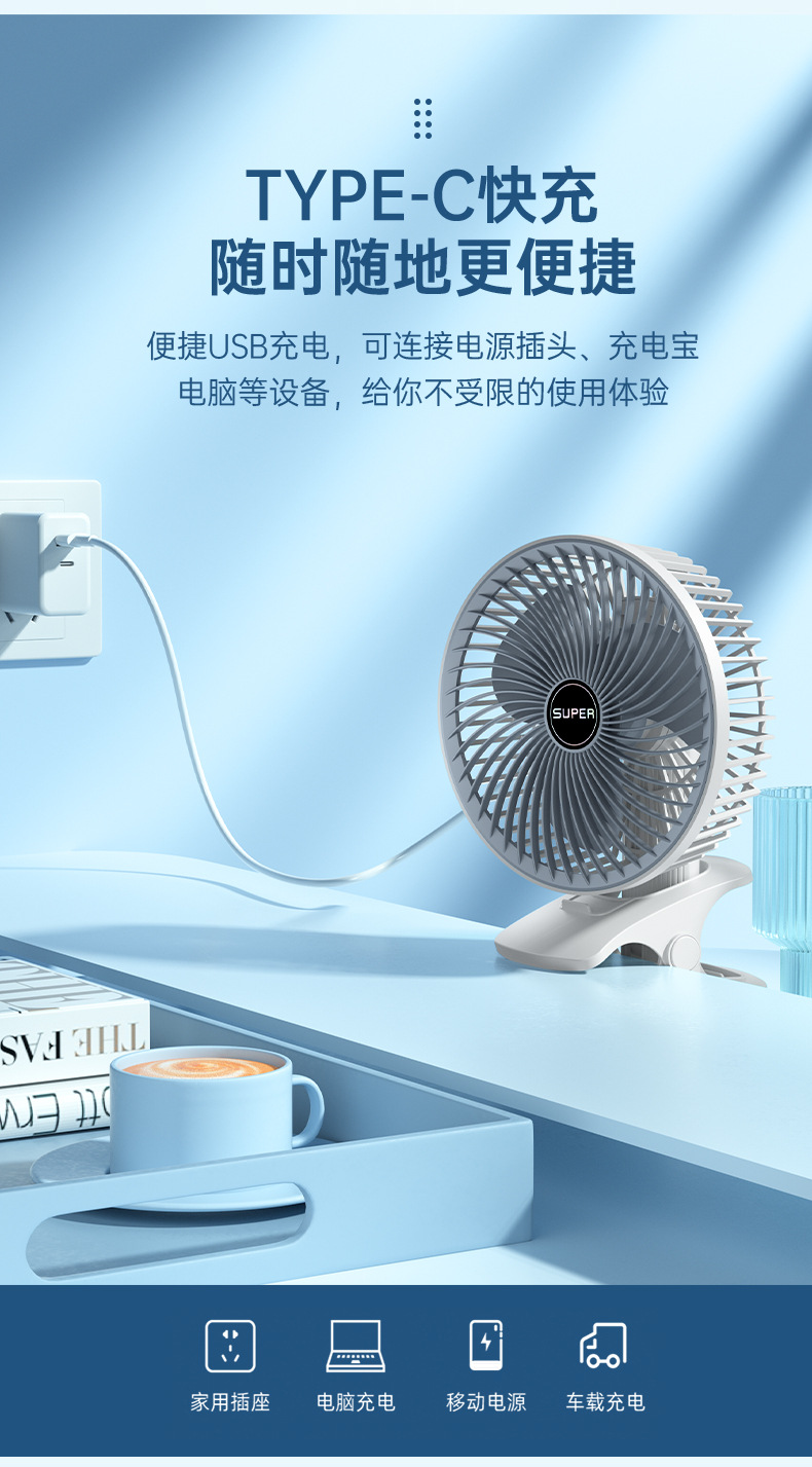 다기능 클립 팬 USB 충전 데스크탑 벽 교수형 순환 전기 팬 휴대용 소형 팬 기숙사스토어 가기