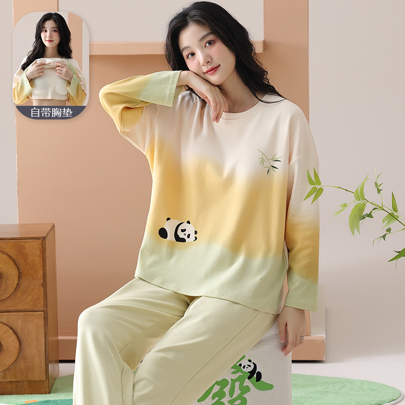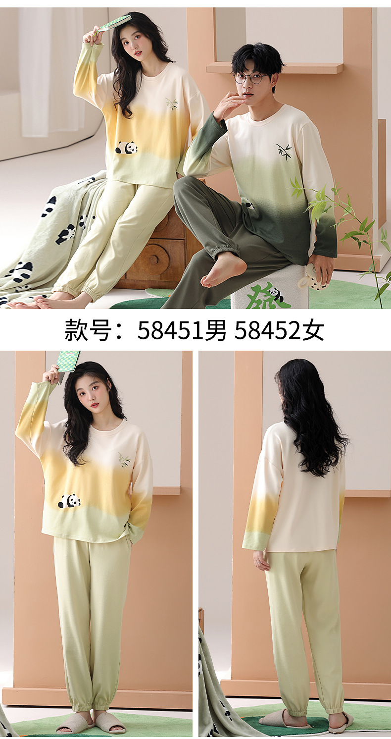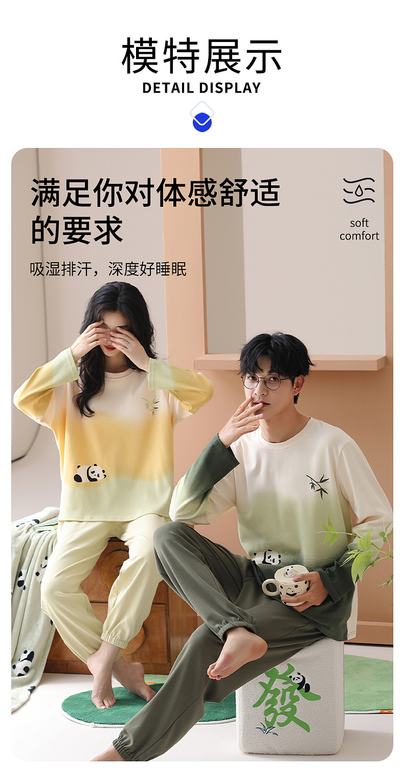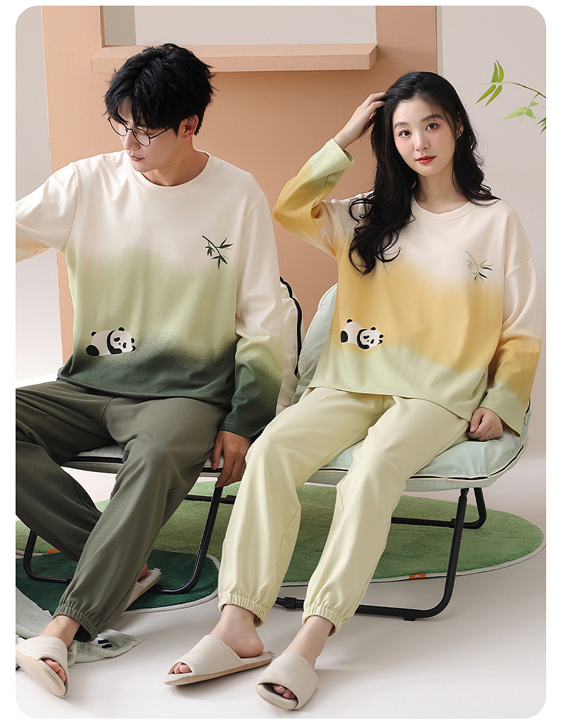 [순면] 커플 잠옷 여성용 가슴 패드 포함 봄, 가을, 겨울 신상 홈웨어 긴팔 캐주얼 남성 세트스토어 가기