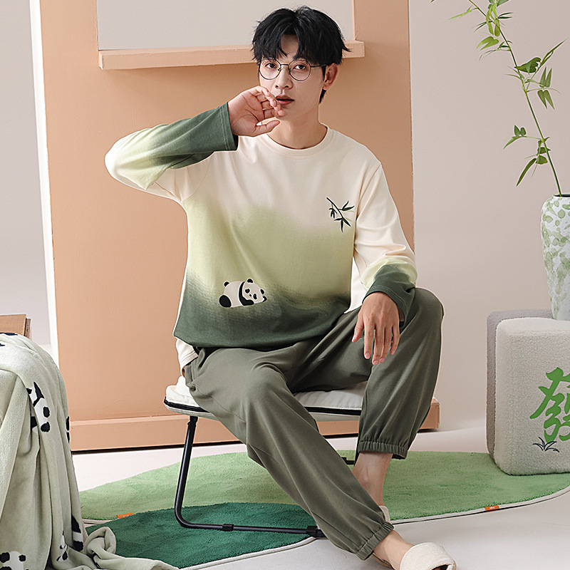 [순면] 커플 잠옷 여성용 가슴 패드 포함 봄, 가을, 겨울 신상 홈웨어 긴팔 캐주얼 남성 세트