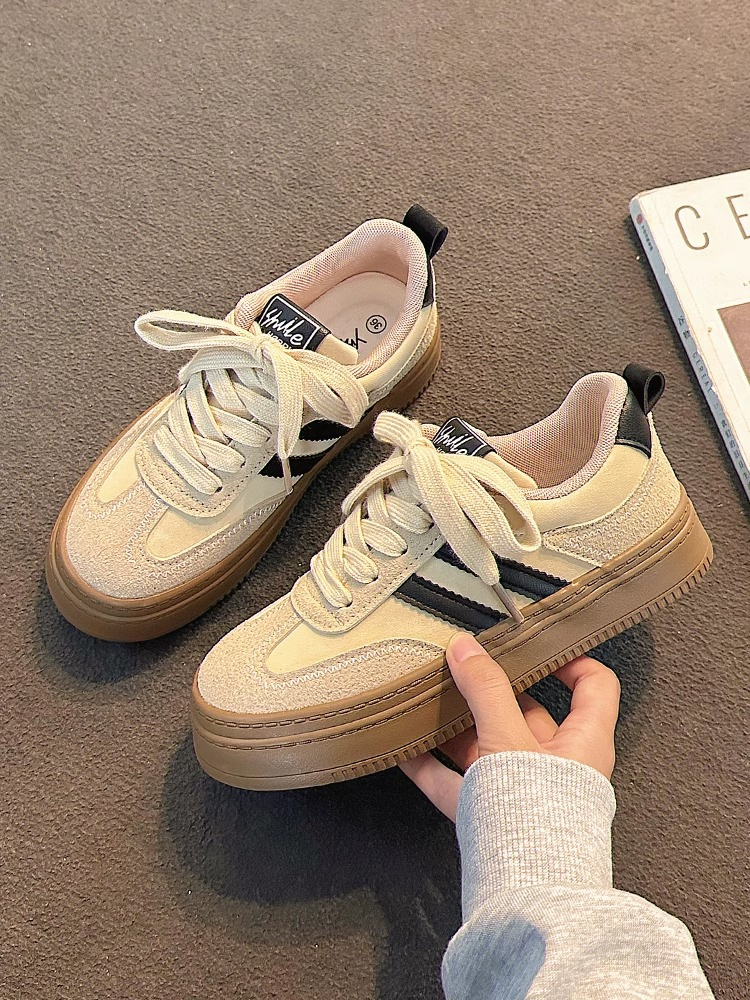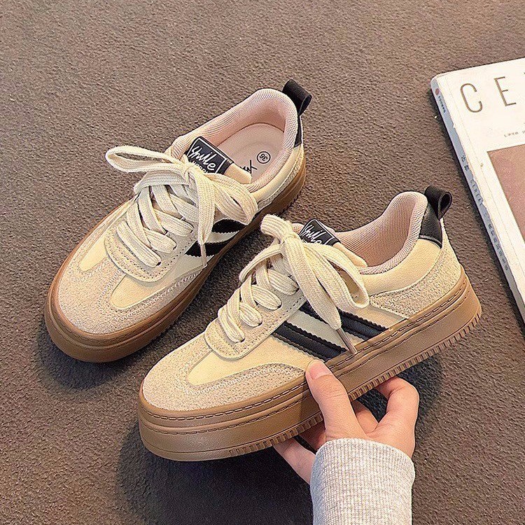 두꺼운 밑창 독일 훈련 신발 여성의 2024 년 새 여름 레트로 틈새 증가 신발 폭발성 봄과 가을 올 매치 스니커즈 여성 신발