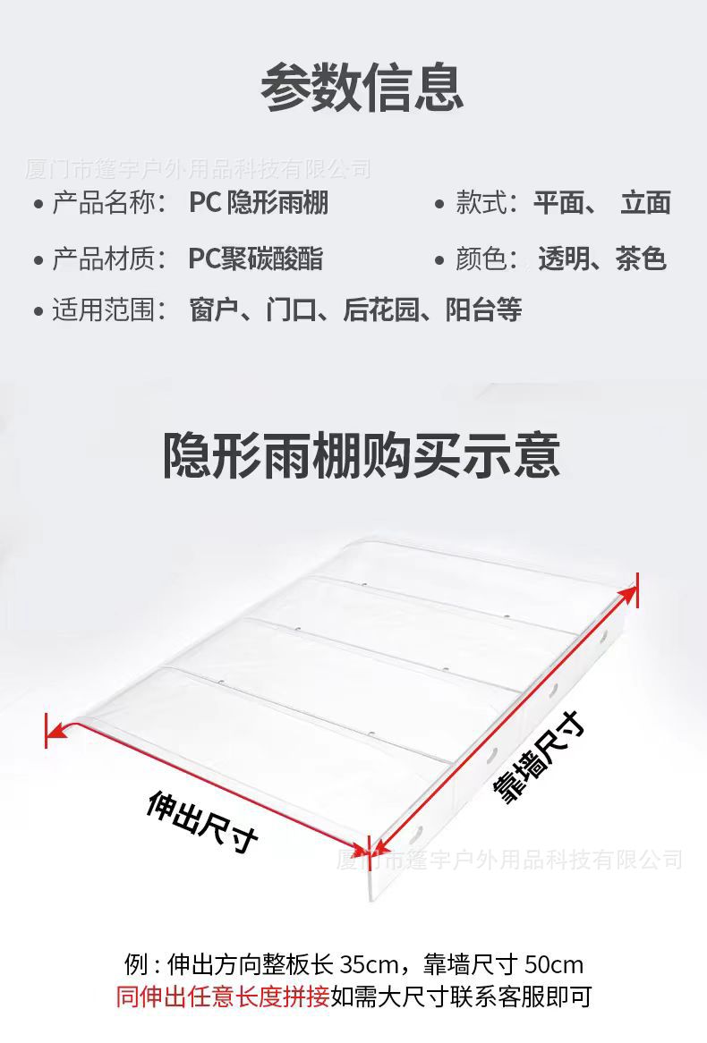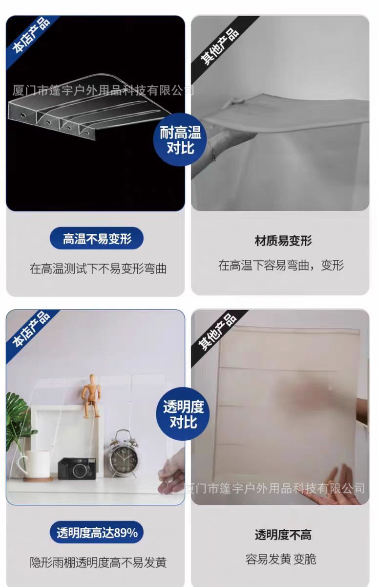 브래킷 폴리 카보네이트 차양 처마 발코니 창 분배 상자 플러그 레인 배플이없는 PC 보이지 않는 캐노피