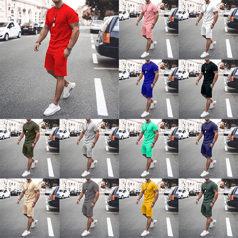 유럽과 미국 남자 2024 거리 남자 짧은 소매 반바지 남자 캐주얼 스포츠 플러스 사이즈 세트 남자스토어 가기