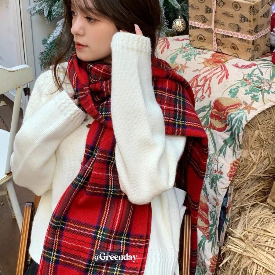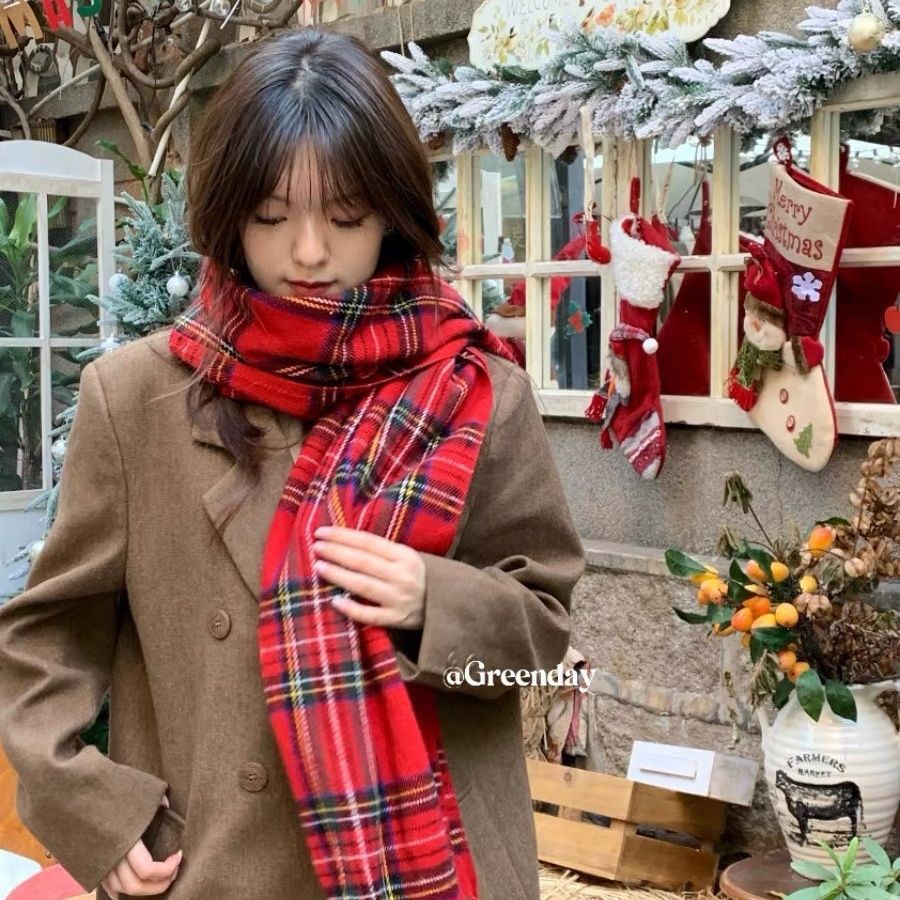 레드 스카프 겨울 여자 격자 무늬 모조 캐시미어 Ins 올매치 하이 레벨 감각 숄 사이버 연예인 스카프 크리스마스 선물스토어 가기