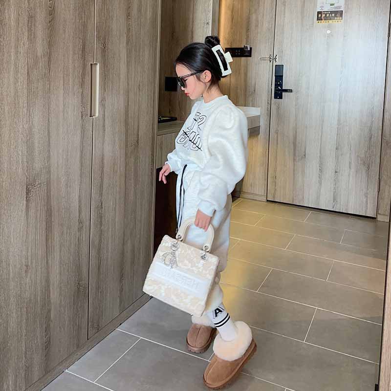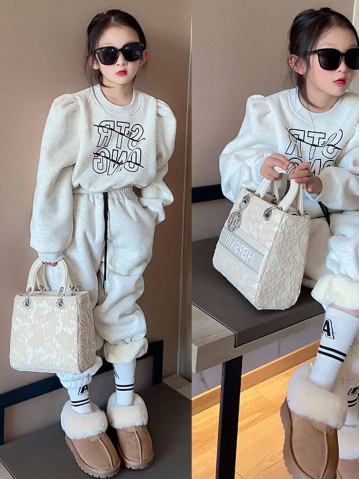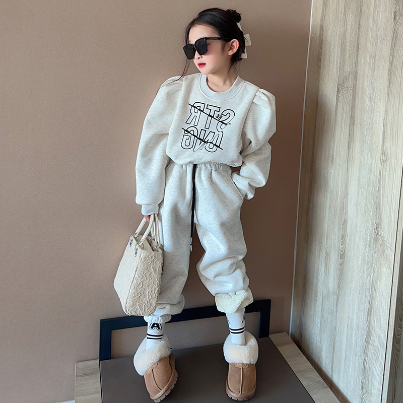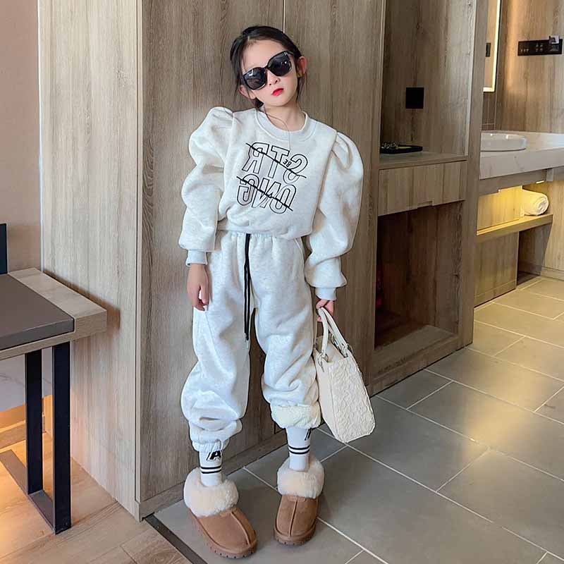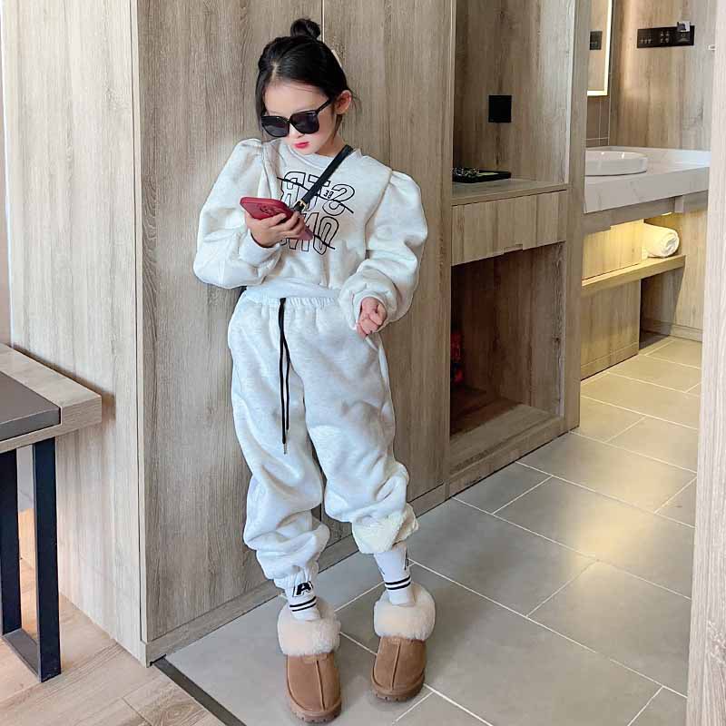 여자 세트 가을과 겨울 새로운 캐주얼 기모 조끼 스포츠 바지 2 세트의 조수 어린이 머리카락스토어 가기