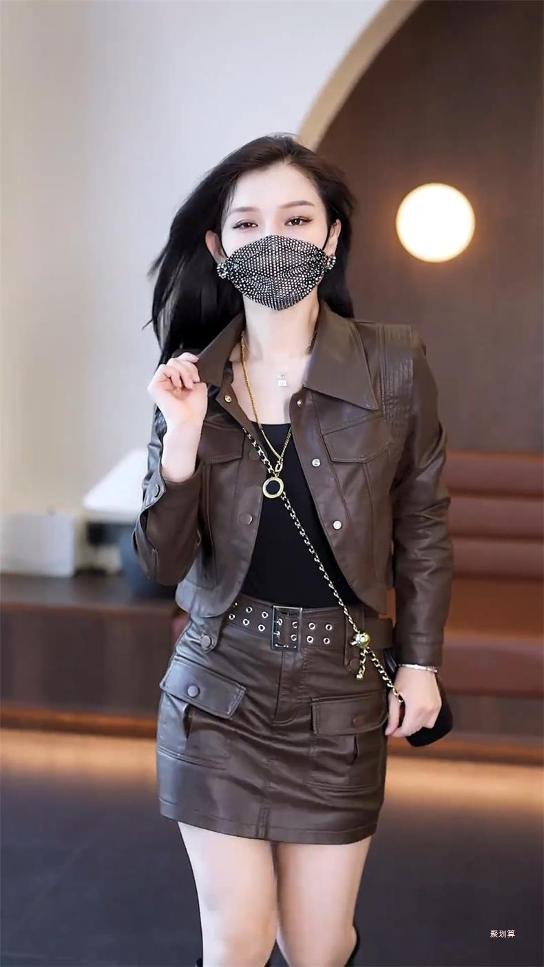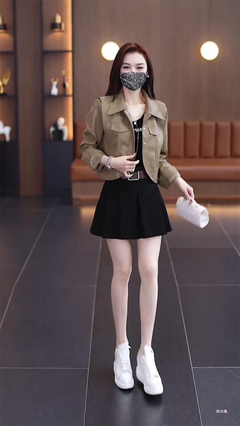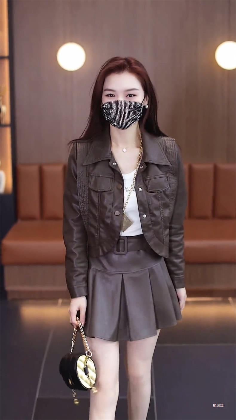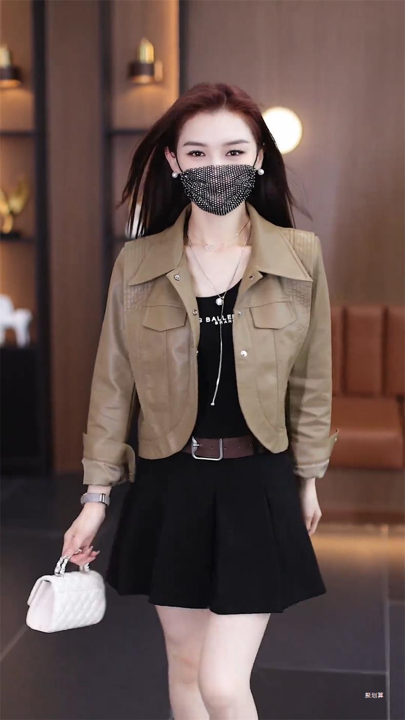 아마존 패션 짧은 가죽 자켓 여성의 봄과 가을 새로운 옷깃 세련된 슬림 가죽 자켓 탑스토어 가기