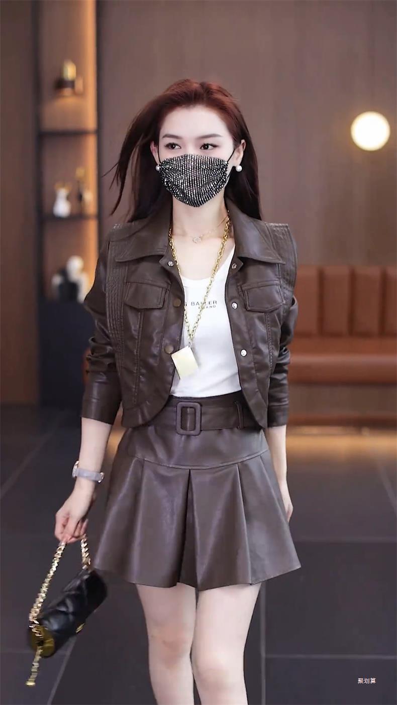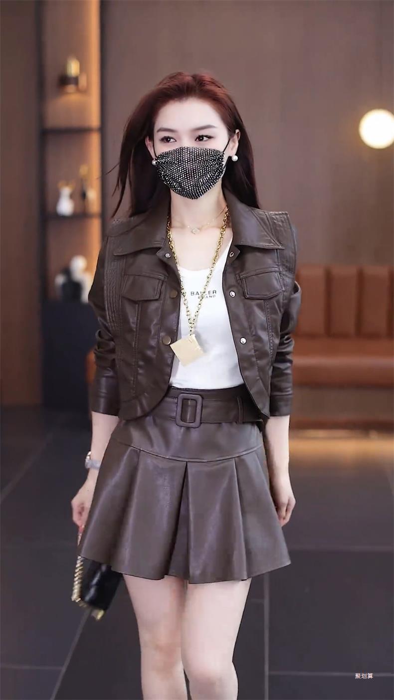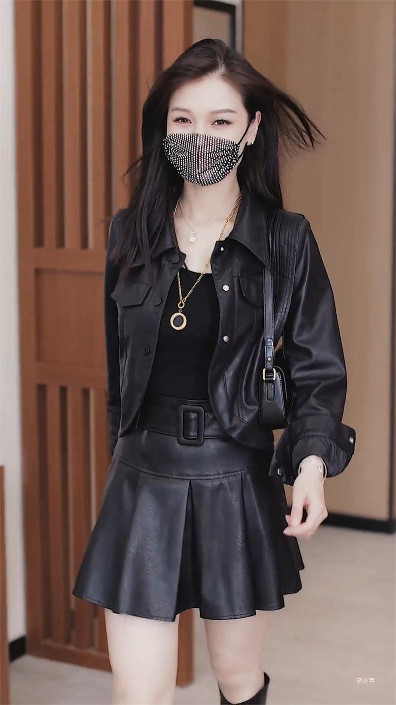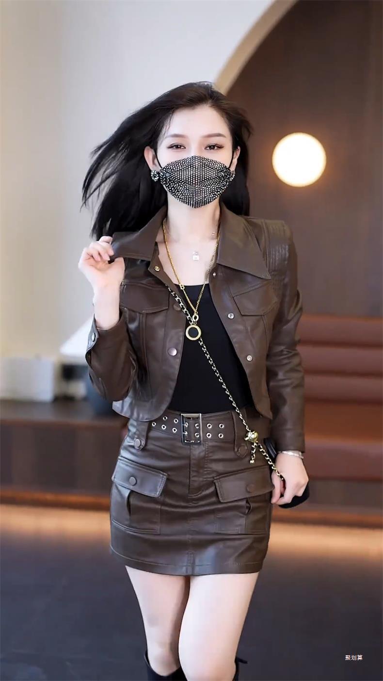 아마존 패션 짧은 가죽 자켓 여성의 봄과 가을 새로운 옷깃 세련된 슬림 가죽 자켓 탑스토어 가기