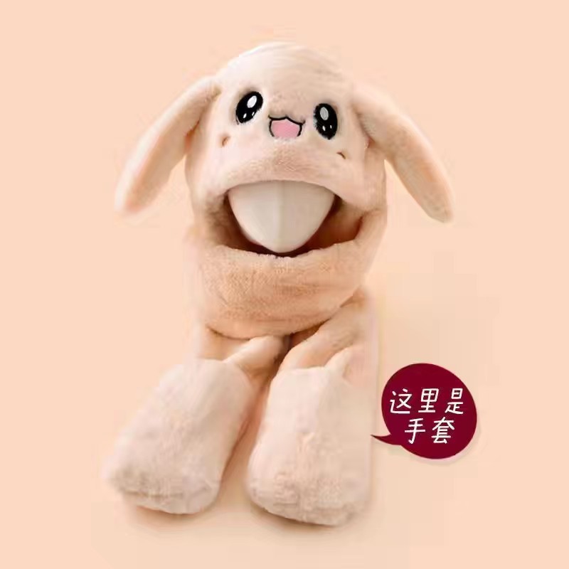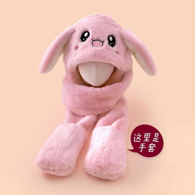 어린이 모자 스카프 3 피스 세트 원피스 두꺼운 토끼 귀 움직일 수있는 겨울 소녀의 귀여운 귀 보호 모자