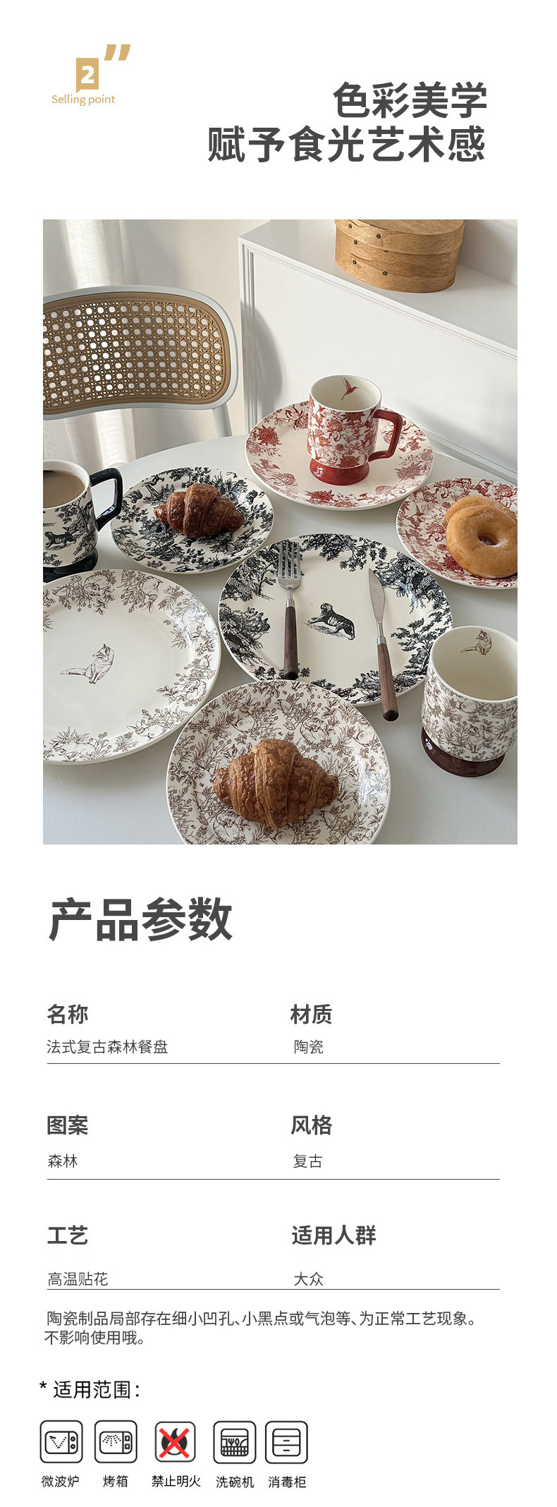 프랑스 스타일 빈티지 디너 플레이트 포레스트 시리즈 플레이트 접시 홈 웨스턴 레스토랑 아침 식사 플레이트 세라믹 디저트 스테이크 파글 리오스토어 가기