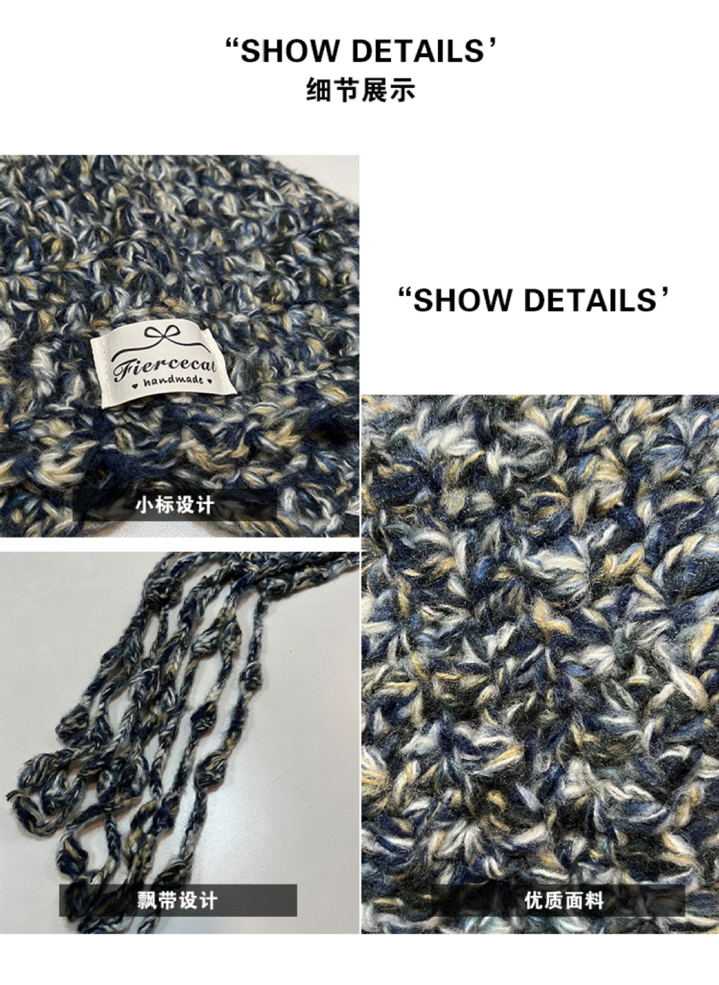 새로운 풀오버 울 모자 어린이 봄과 가을 봉제 니트 귀 보호 캡 혼합 컬러 술 브레이드 바오터 캡 트렌디