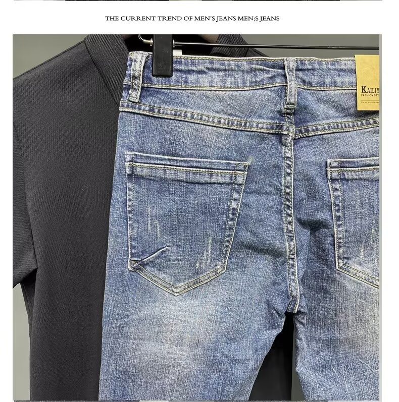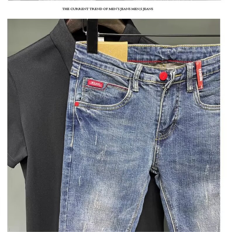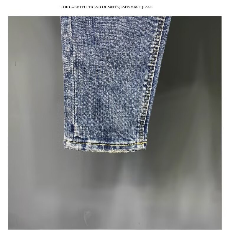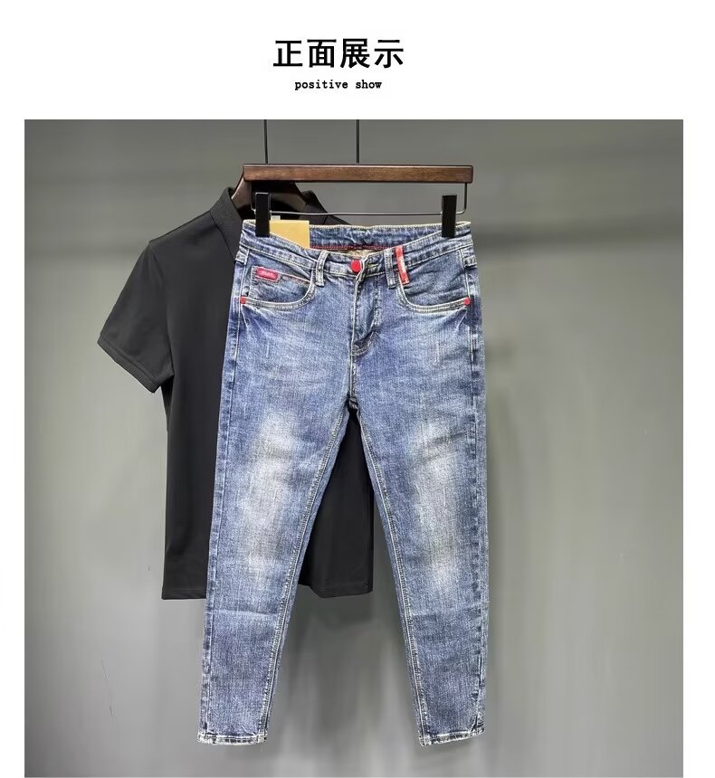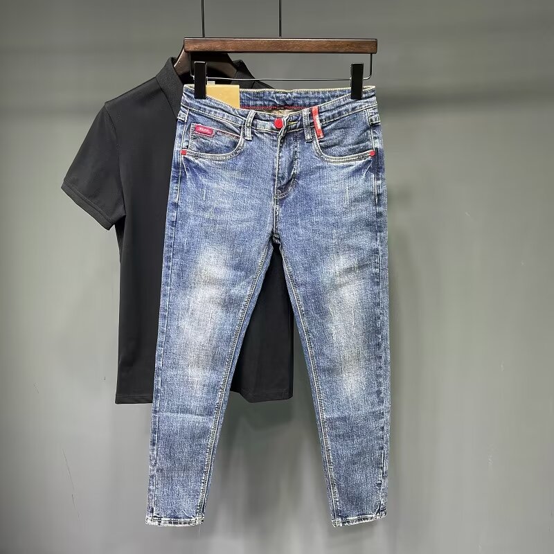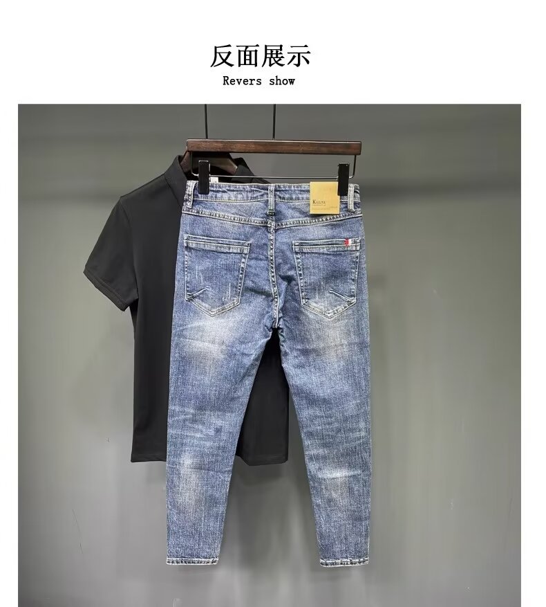 청바지 남성 2024 새로운 한국 스타일 유행 슬림 핏 스키니 발 레트로 오래 된 세련된 브랜드 블루 발목 길이 바지스토어 가기