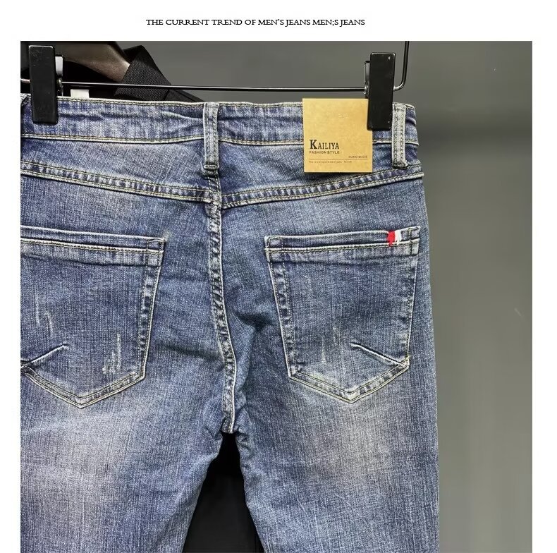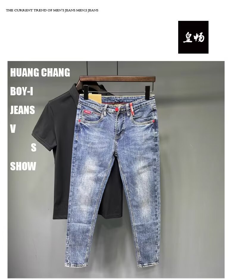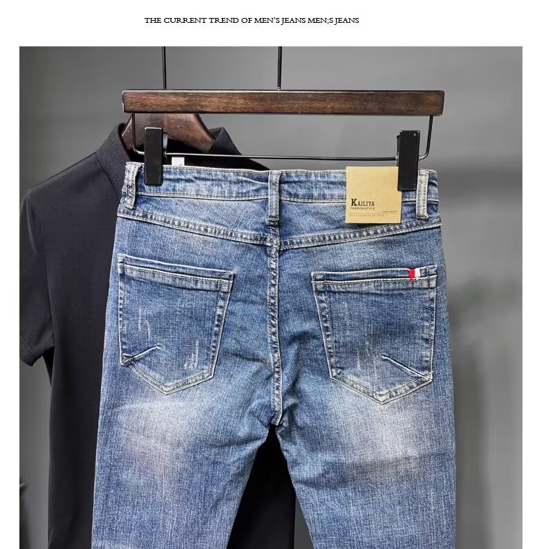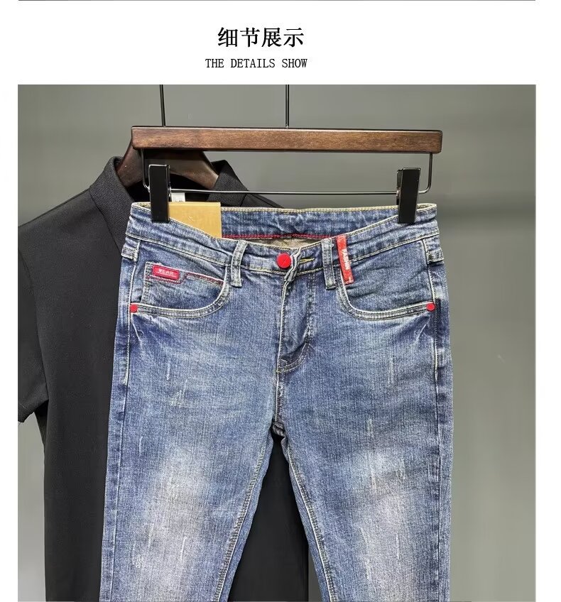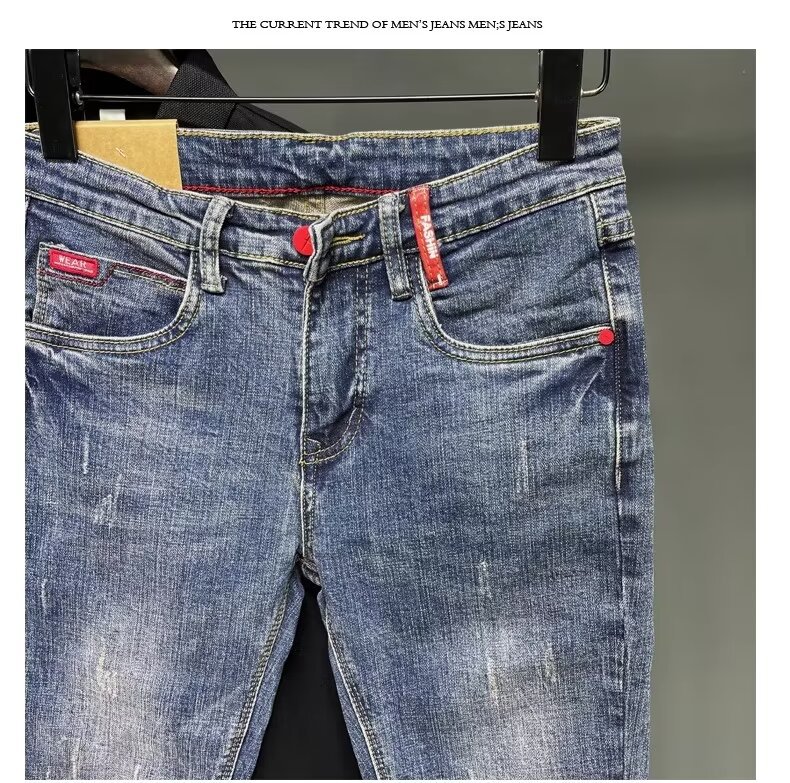 청바지 남성 2024 새로운 한국 스타일 유행 슬림 핏 스키니 발 레트로 오래 된 세련된 브랜드 블루 발목 길이 바지스토어 가기