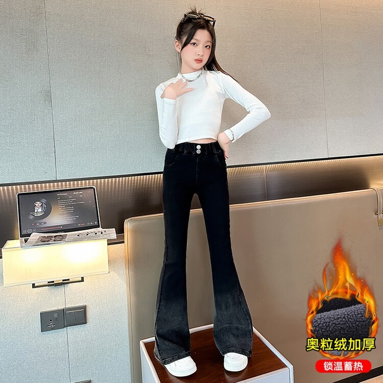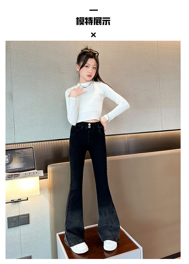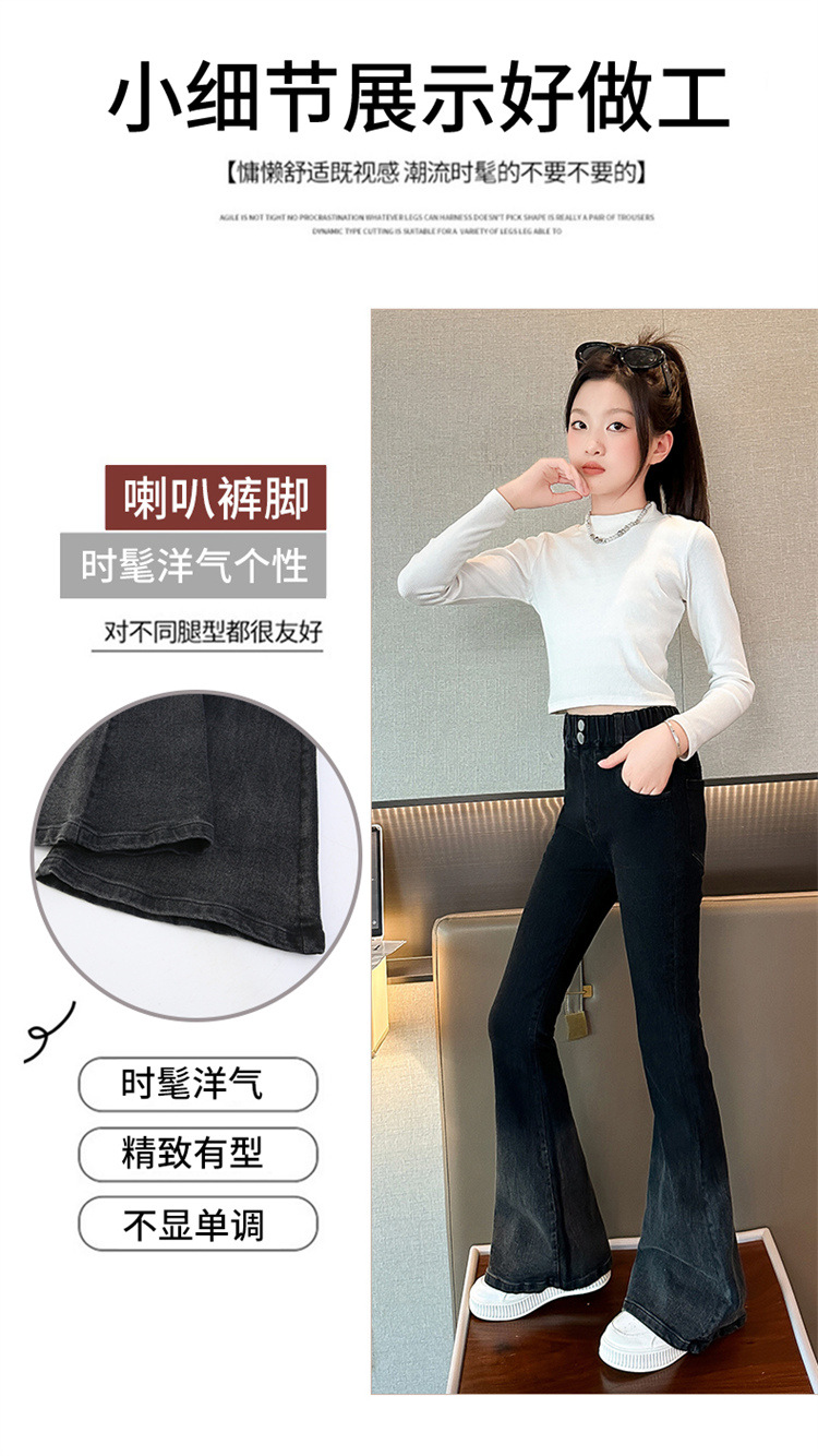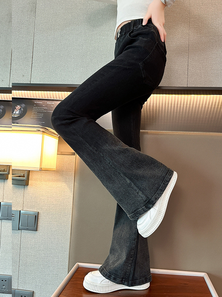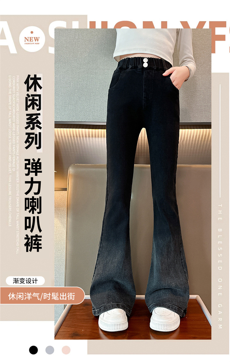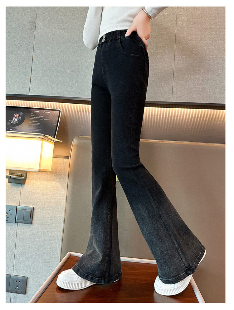 소녀 청바지 가을 2024 가을 새로운 탄성 바지 한국식 그라디언트 가을/겨울 플레어 바지스토어 가기