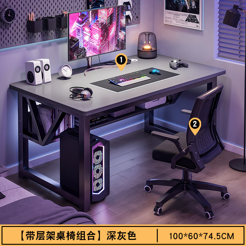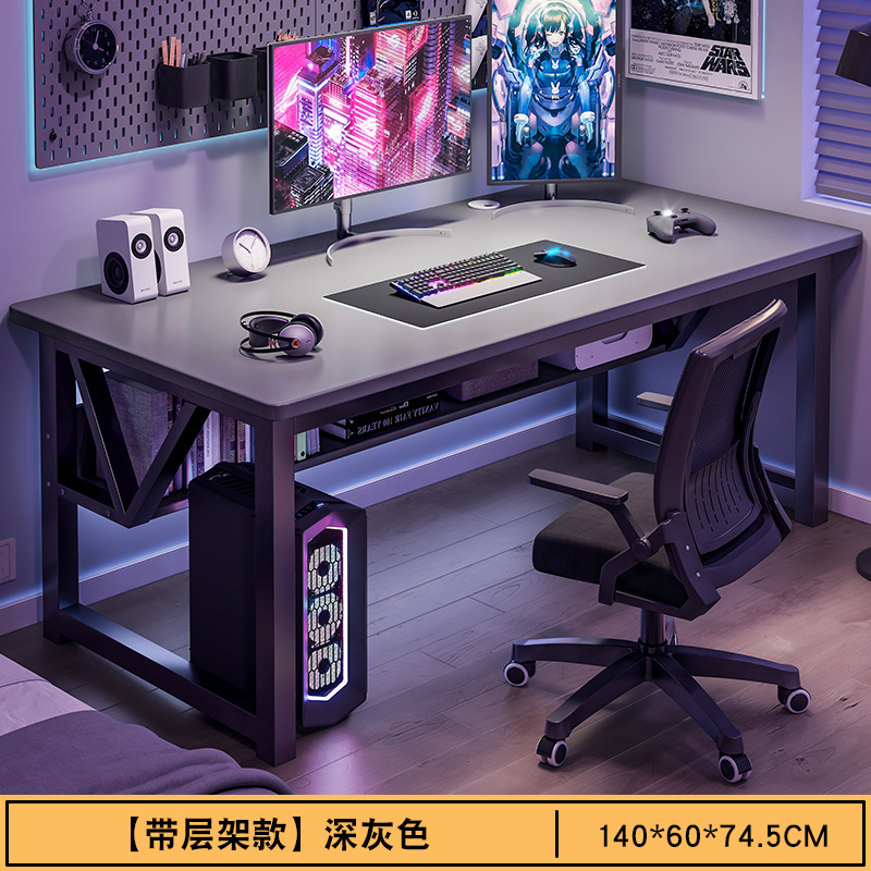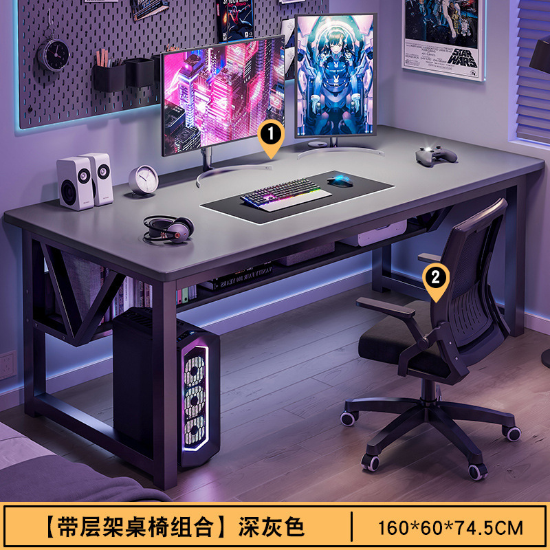 • [선반이 포함된 조합 패키지] 다크 그레이 및 블랙 프레임 140CM + 컴퓨터 의자