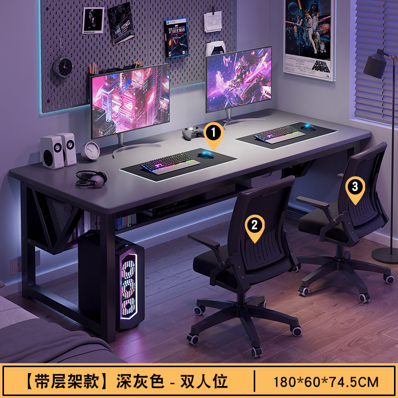 • [선반이 포함된 조합 패키지] 다크 그레이 + 블랙 프레임 180 + 컴퓨터 의자 2개