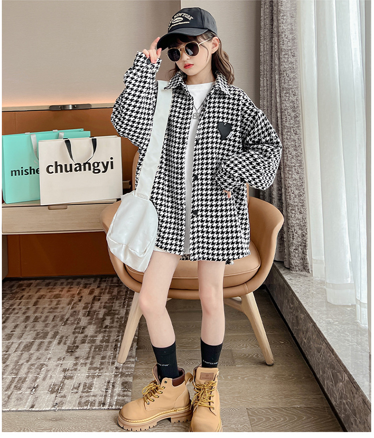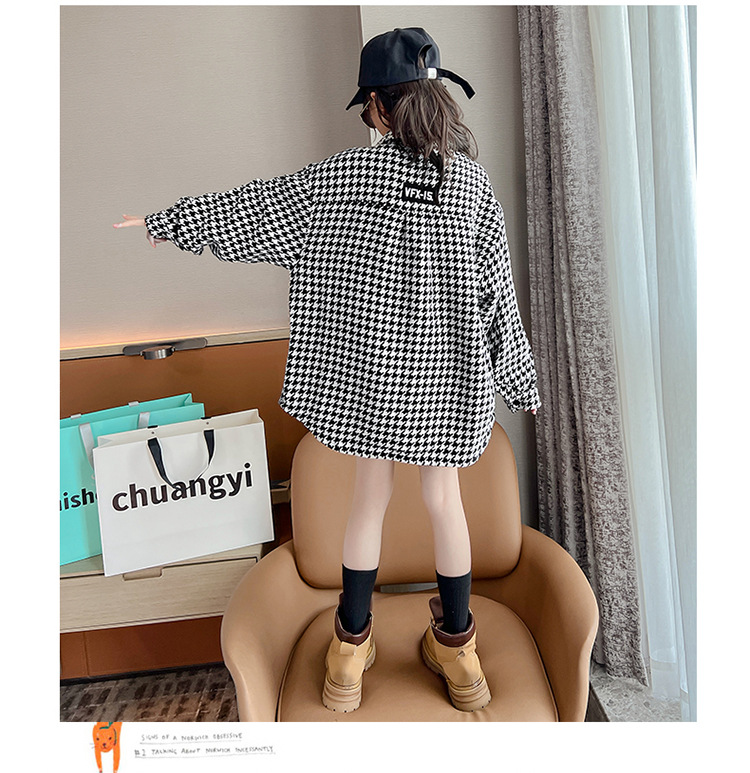어린이 코트 봄 가을 한국 새 여자 격자 무늬 긴 소매 윈드 브레이커 2025 어린이 셔츠 코트 드롭 배송