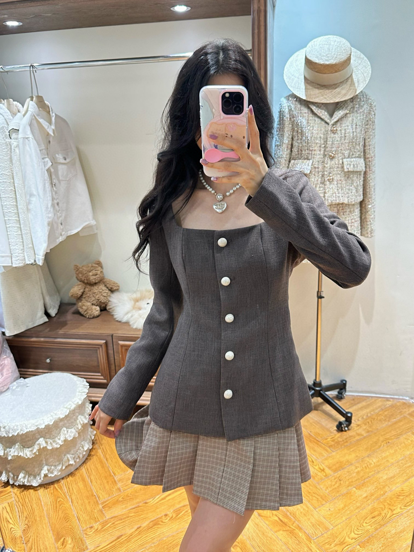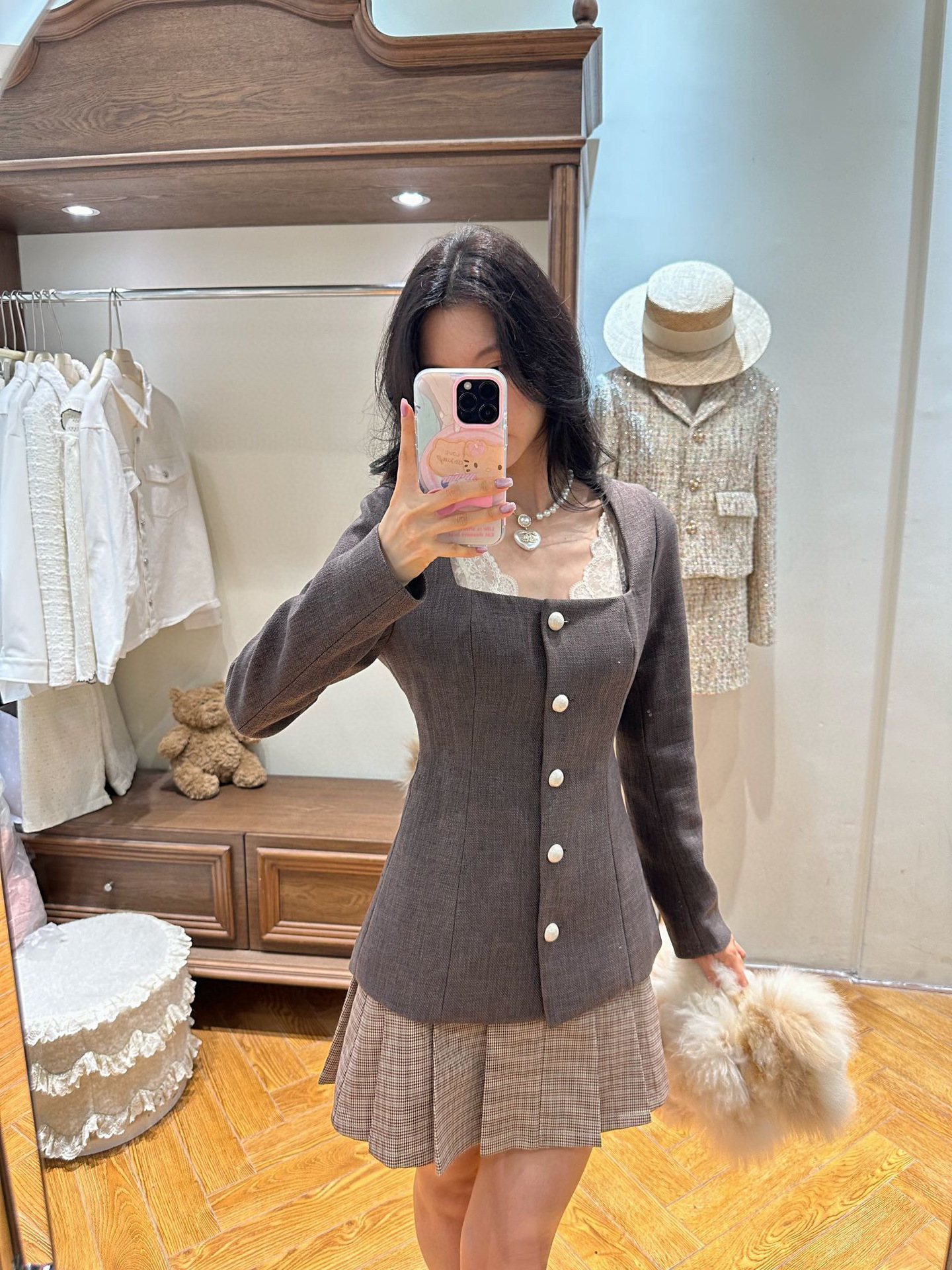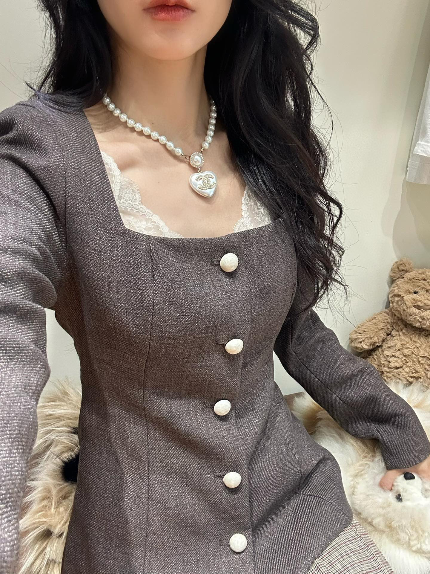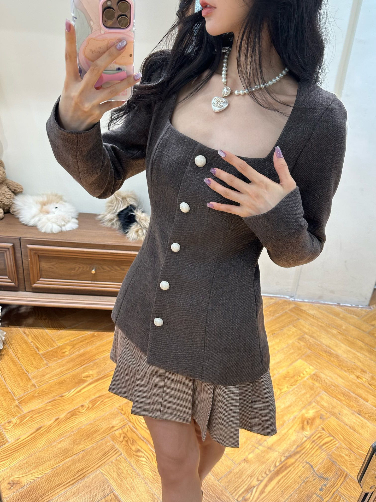 版型很显瘦哦~方领特别气质,也可以露出美美的吊带内搭,不同的感觉~