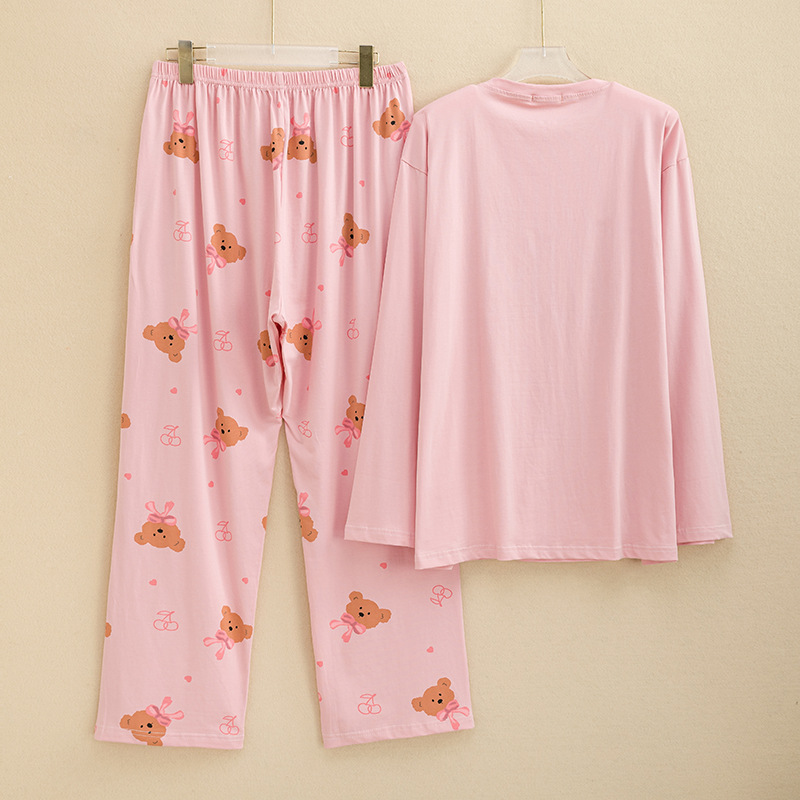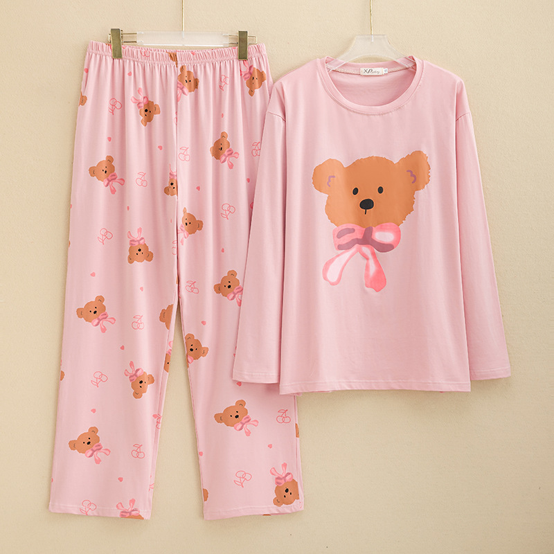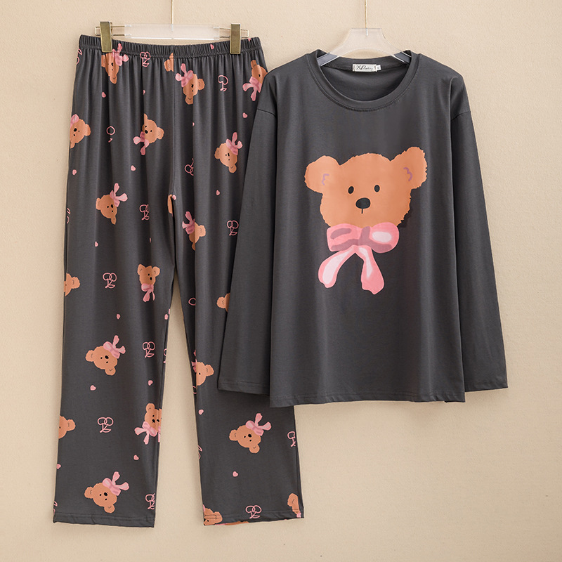 여성 긴 소매 바지 파자마 플러스 사이즈 니트 코튼 봄과 가을 레저 200 진 남성 느슨한 홈 의류 세트스토어 가기