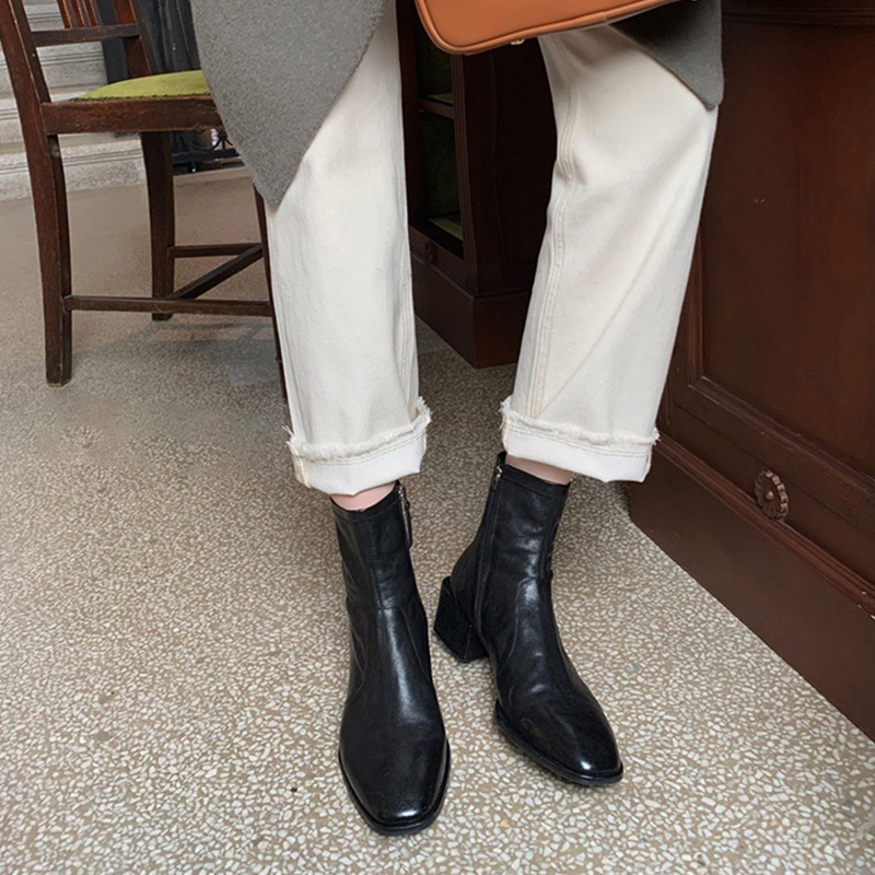 Cowhide 버전 ~ 정품 가죽 레트로 플리츠 스퀘어 토트 마틴 부츠 여자 두꺼운 힐 사이드 지퍼 첼시 부츠 여자 쇼트 부츠스토어 가기
