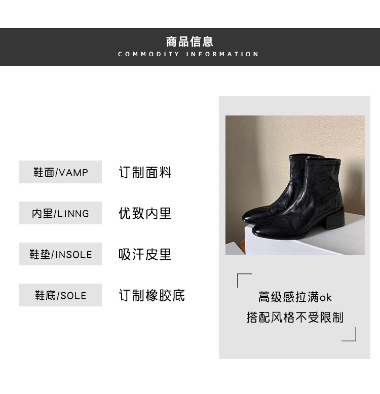 牛皮版~葡萄妈同款秋冬季新款圆头粗跟弹力靴烟筒切尔西靴女短靴
