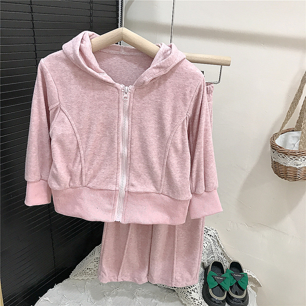소녀 세트 봄과 가을 새로운 온라인 인기 소녀 후드 카디건 스웨터 어린이 스트레이트 바지 대외 무역을위한 투피스 세트