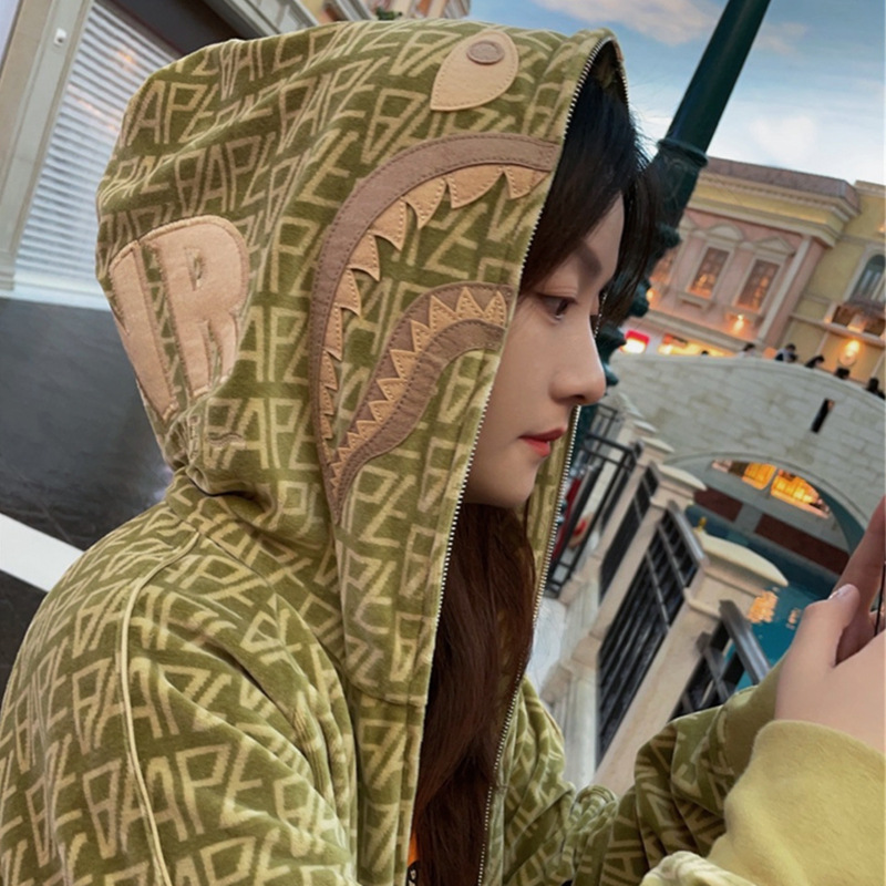 대외 무역 국경 도매 상어 스웨트 셔츠 남성 전체 인쇄 편지 사막 컬러 스트리트 패션 브랜드 느슨한 여성 후드 재킷스토어 가기