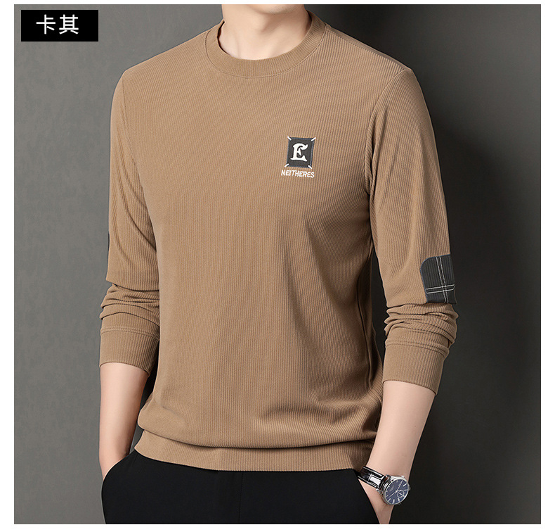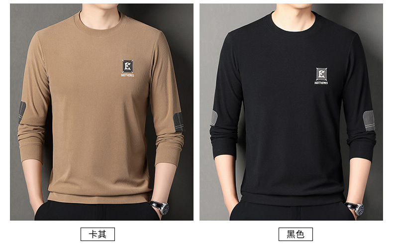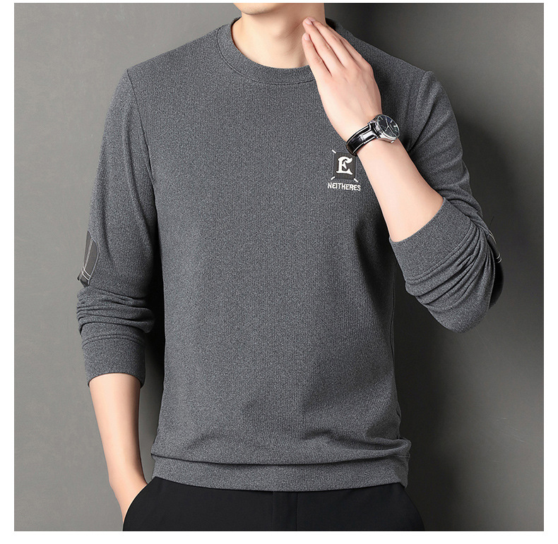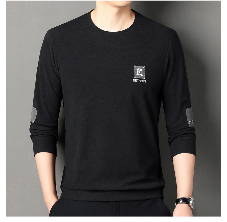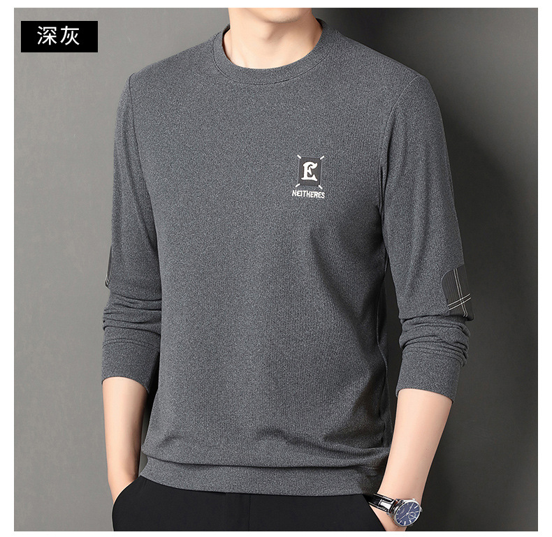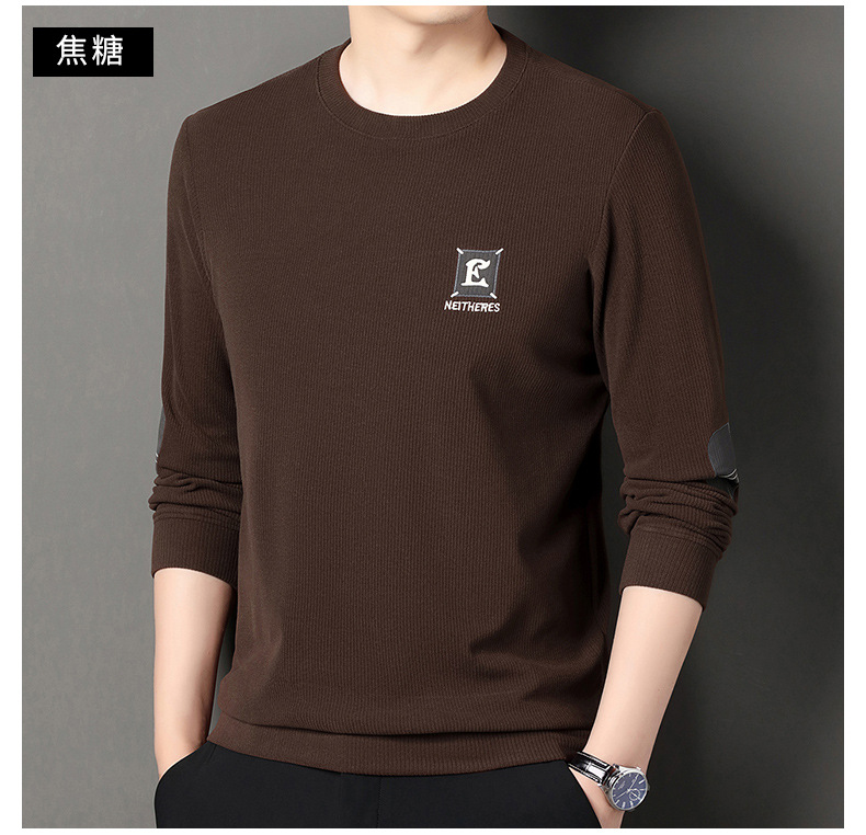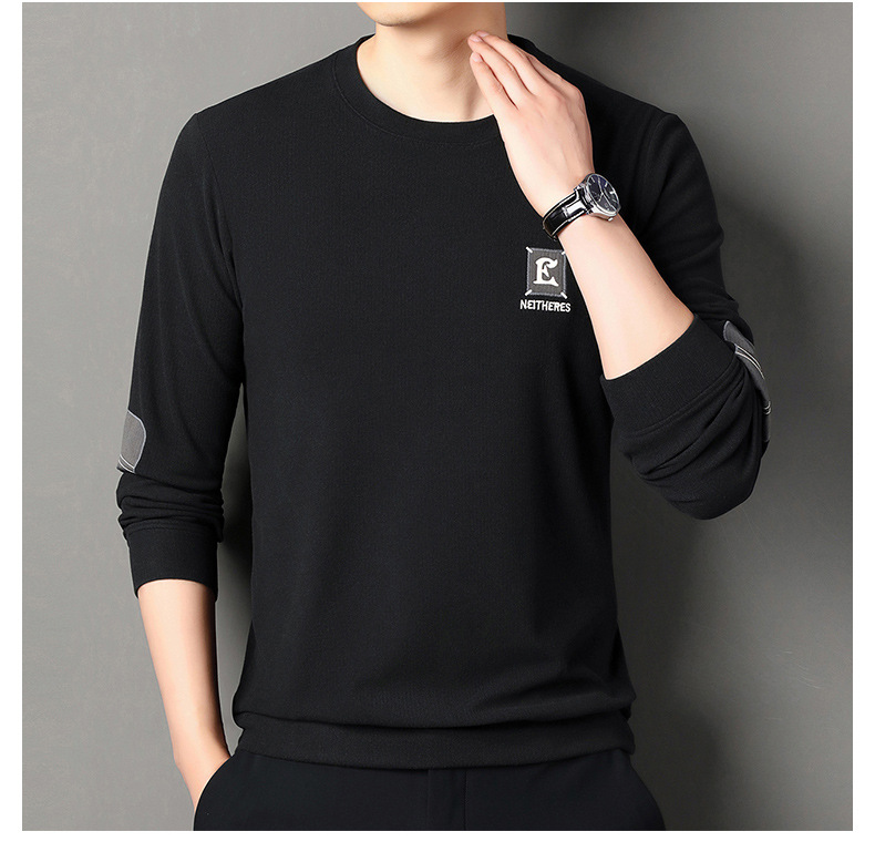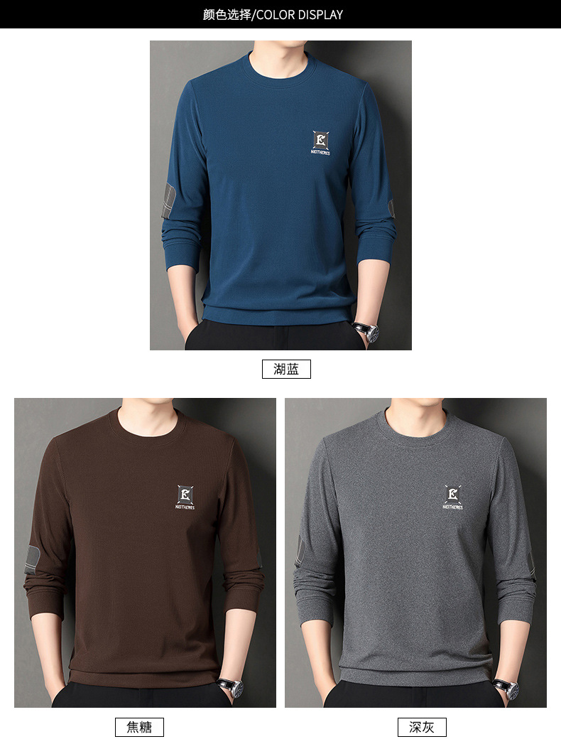 2024 년 가을 새로운 스웨터 남자 자수 라운드 넥 한국 캐주얼 루즈 솔리드 컬러 남성용 롱 슬리브 베이스 셔츠스토어 가기