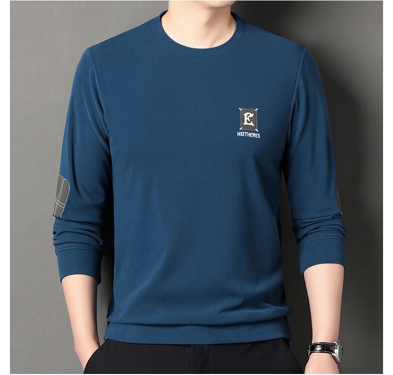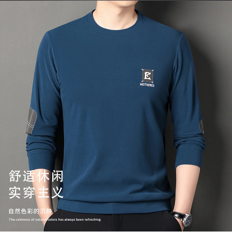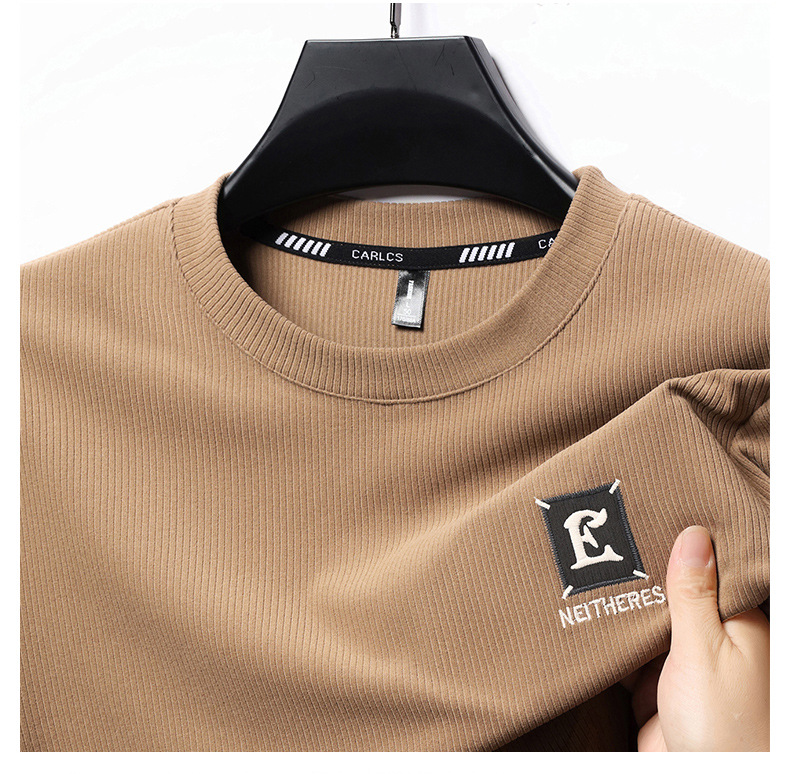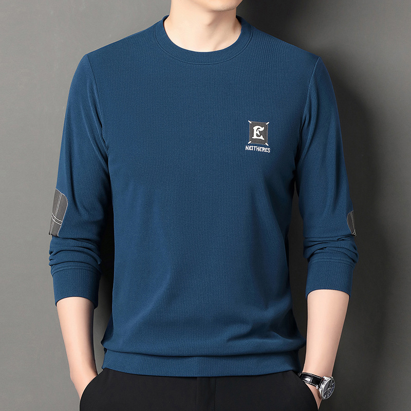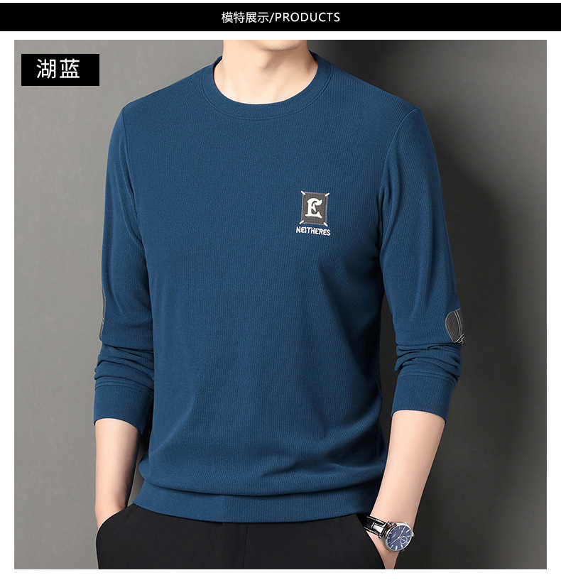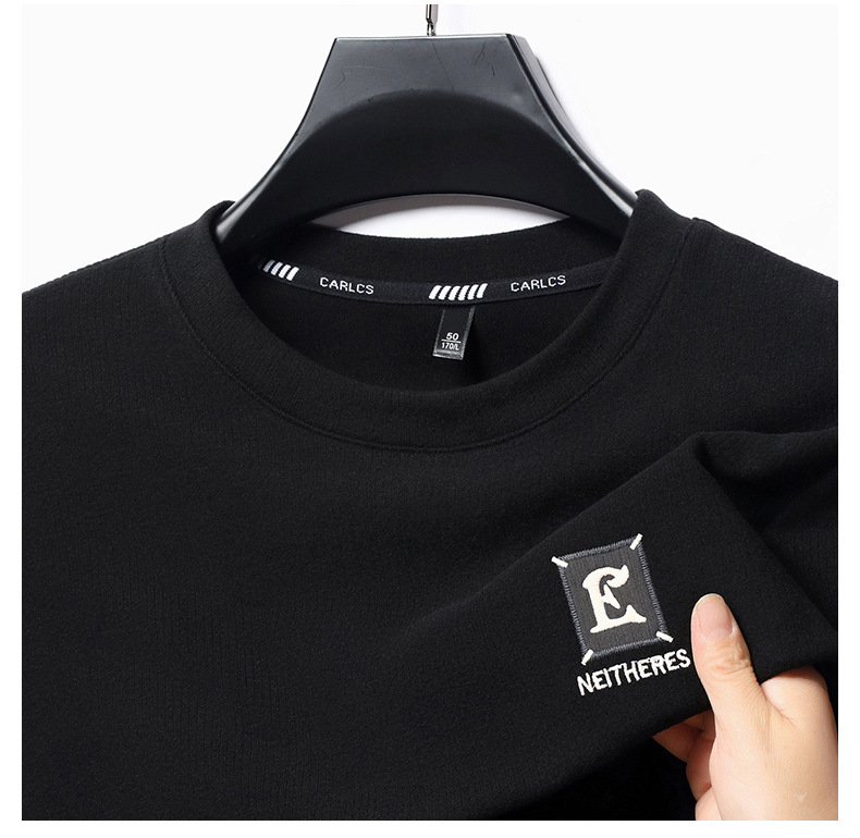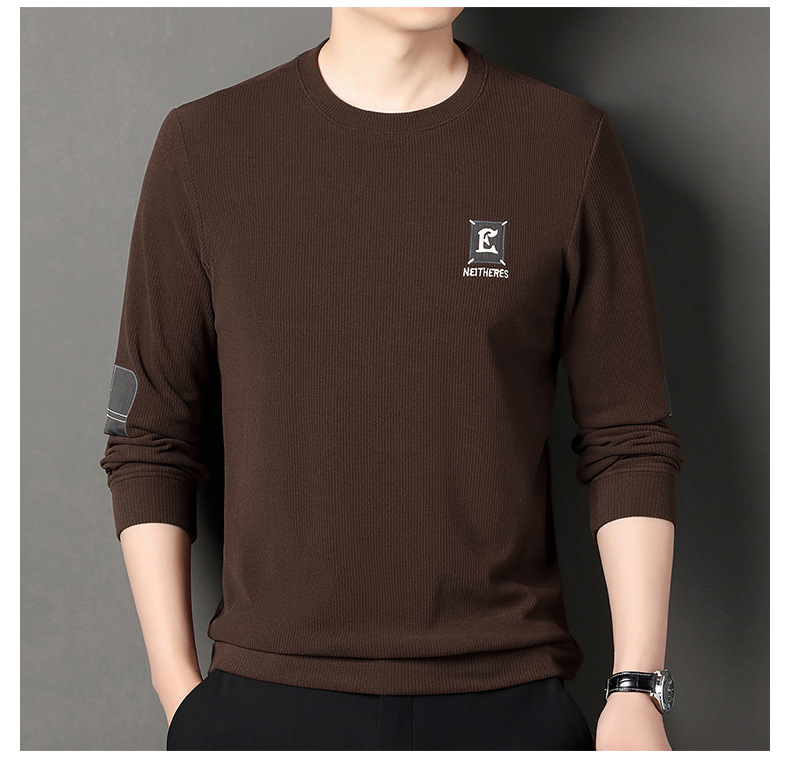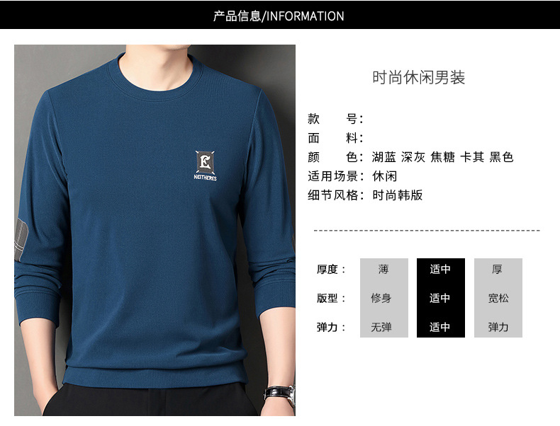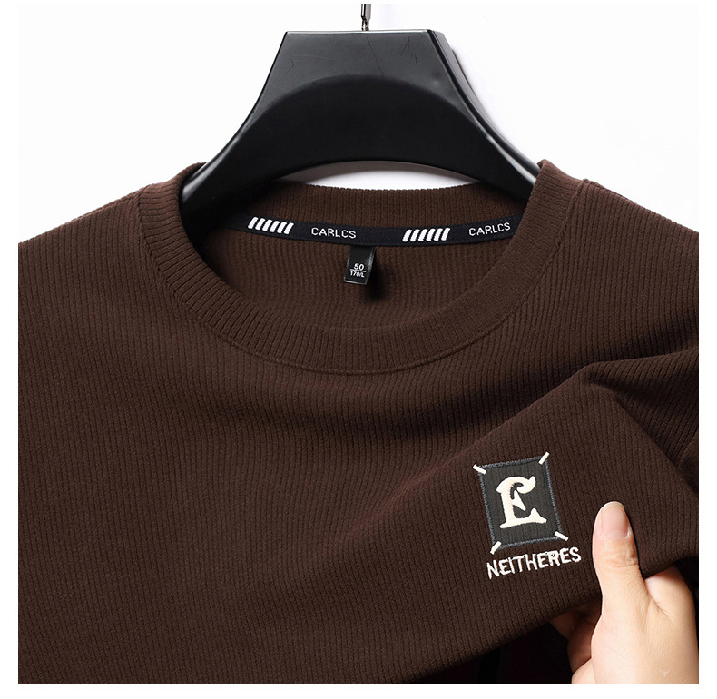 2024 년 가을 새로운 스웨터 남자 자수 라운드 넥 한국 캐주얼 루즈 솔리드 컬러 남성용 롱 슬리브 베이스 셔츠스토어 가기