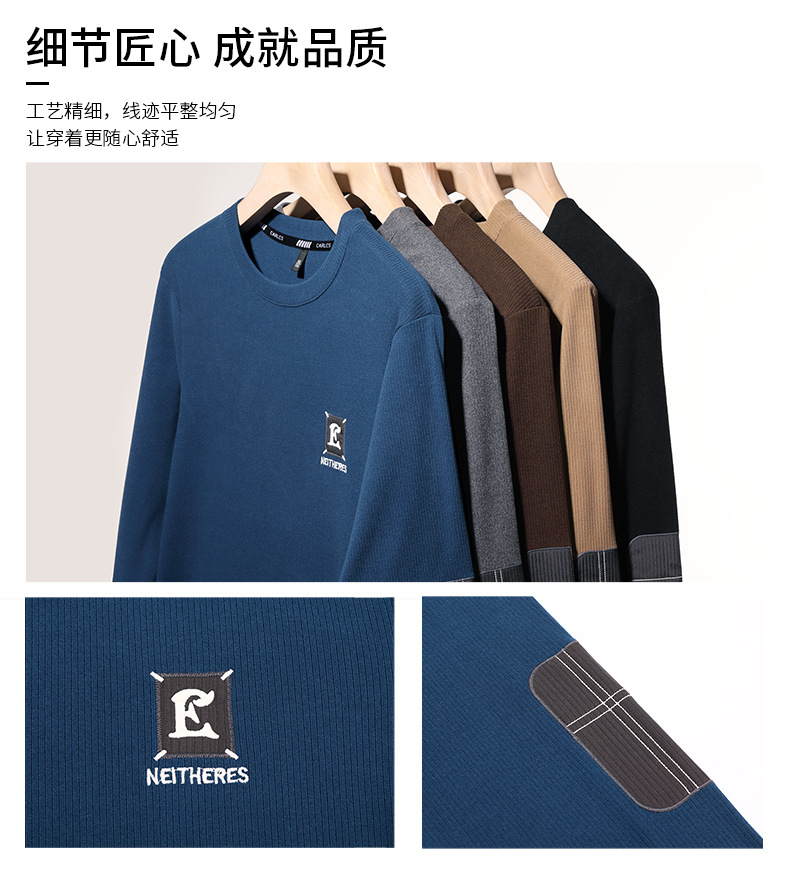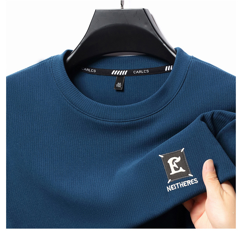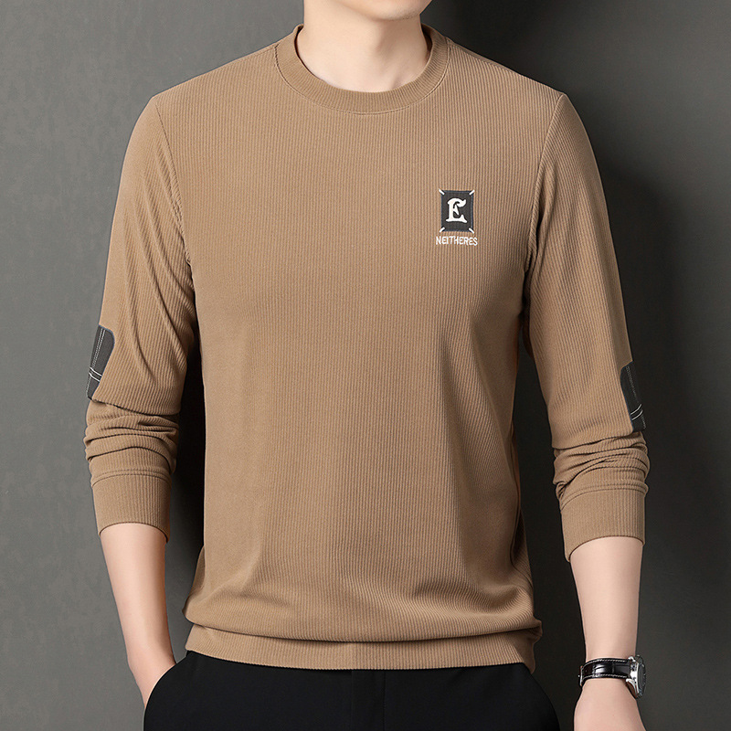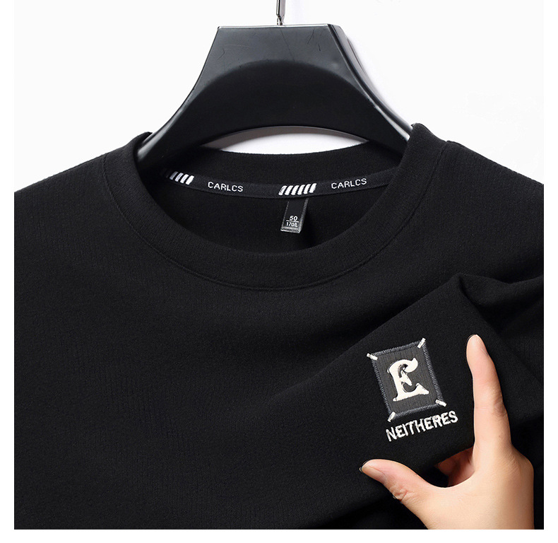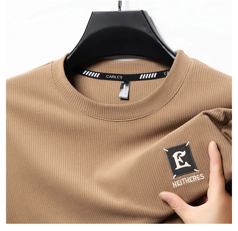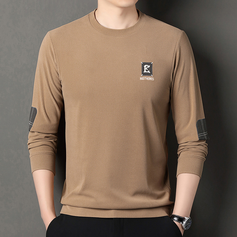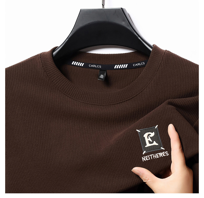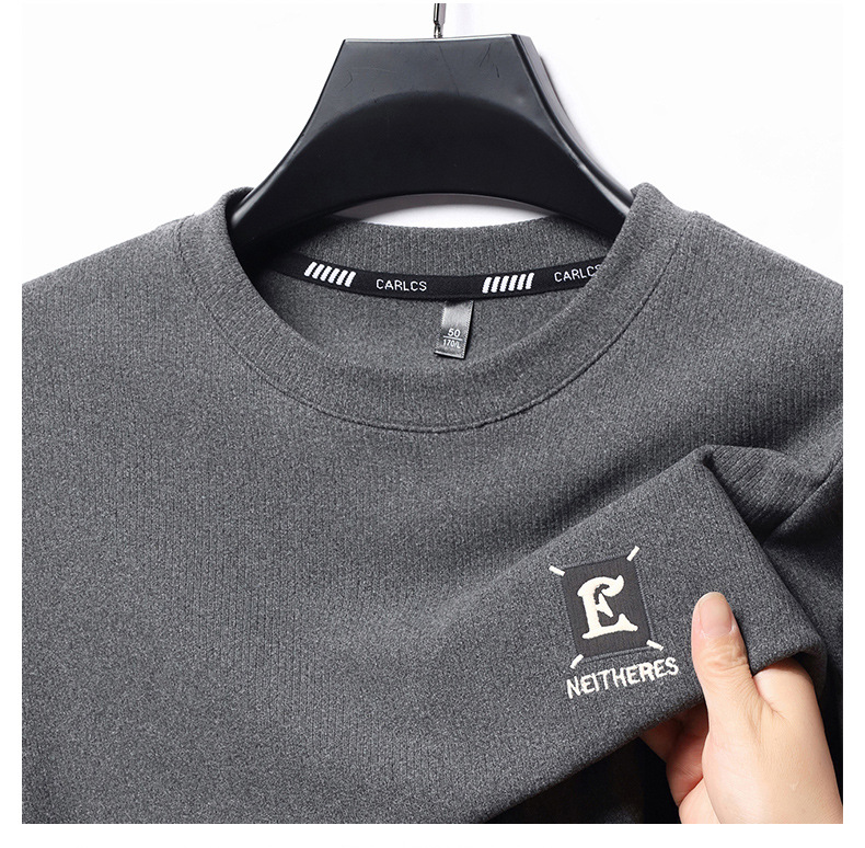 2024 년 가을 새로운 스웨터 남자 자수 라운드 넥 한국 캐주얼 루즈 솔리드 컬러 남성용 롱 슬리브 베이스 셔츠스토어 가기