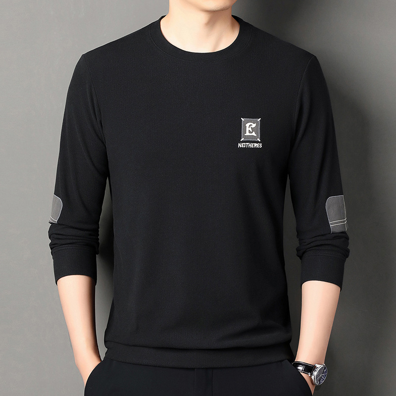 2024 년 가을 새로운 스웨터 남자 자수 라운드 넥 한국 캐주얼 루즈 솔리드 컬러 남성용 롱 슬리브 베이스 셔츠