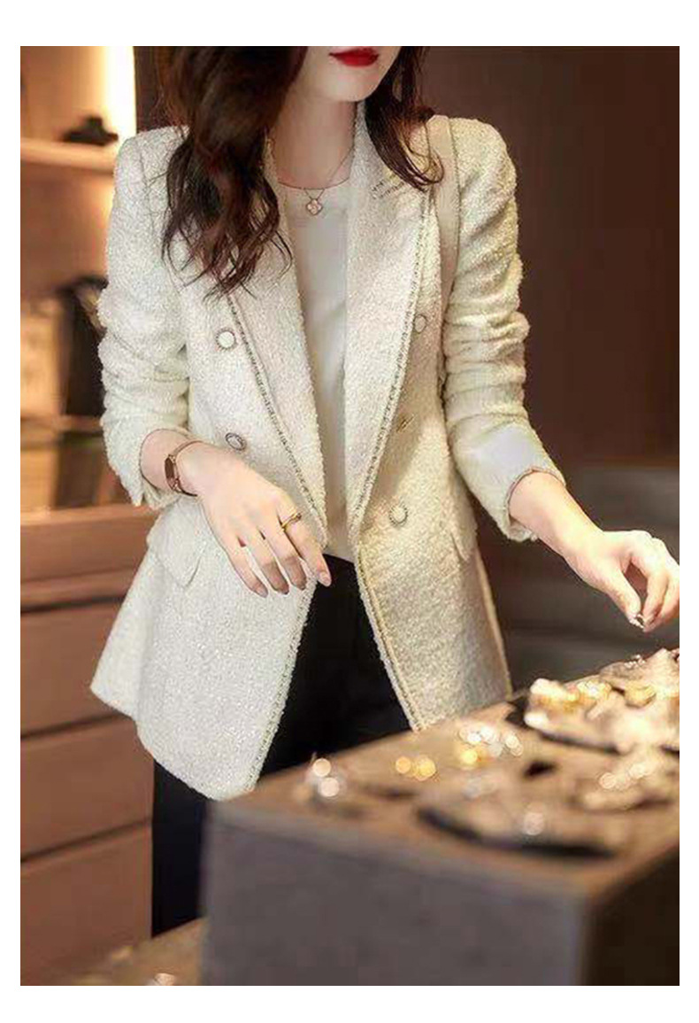 2025 가을 겨울 신상 프렌치 라이트 럭셔리 모직 정장 재킷 여성용 고급스러운 기품 있는 슬림핏 정장 상의스토어 가기