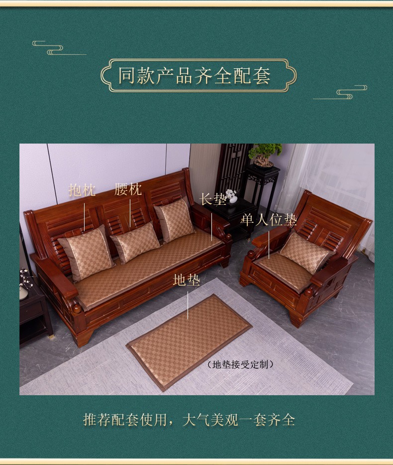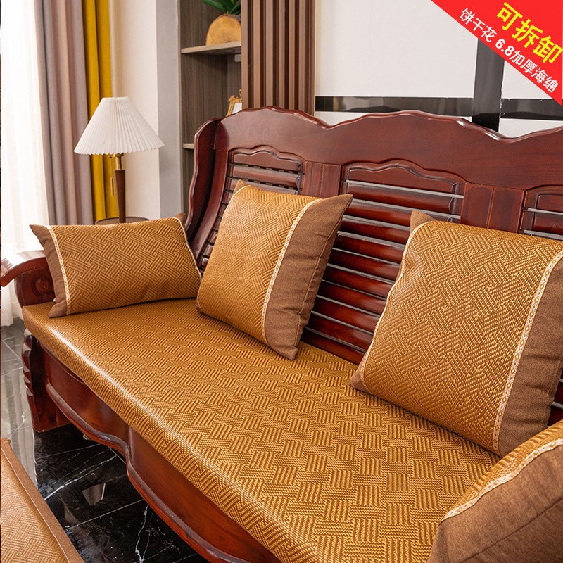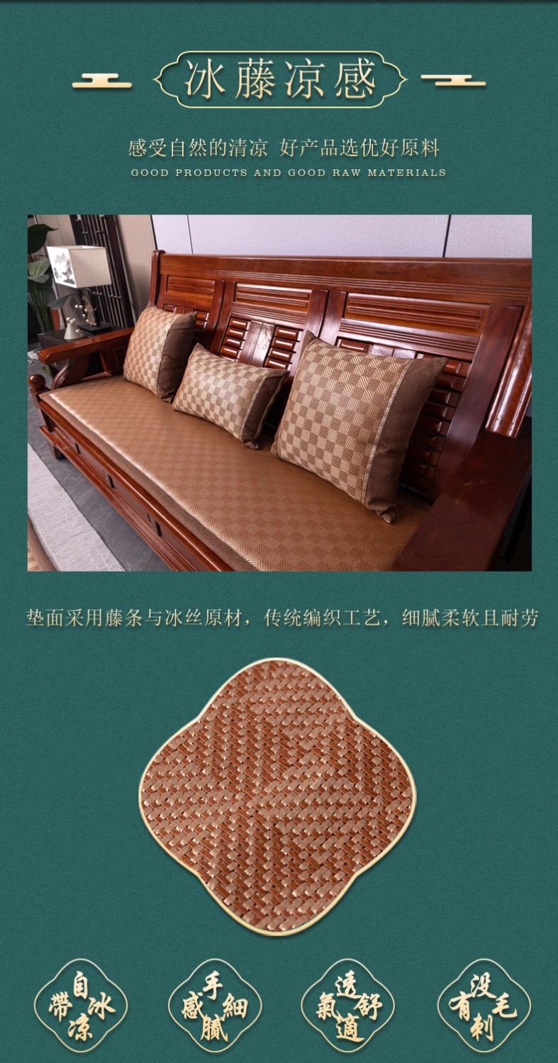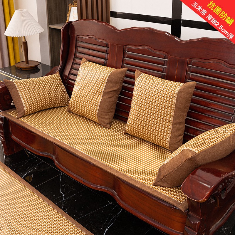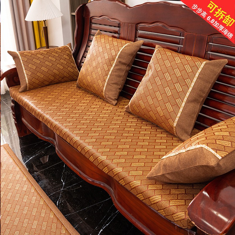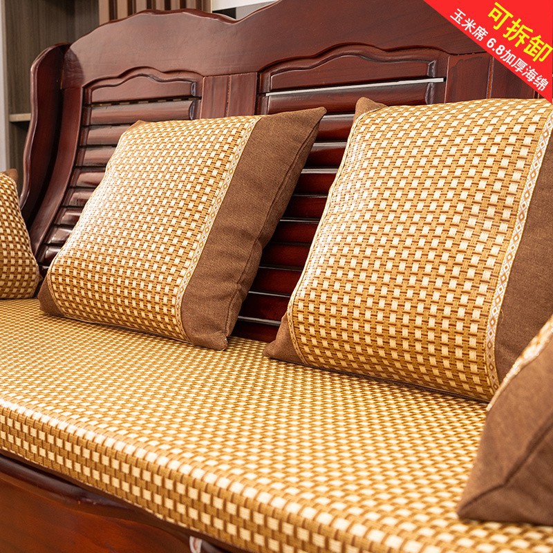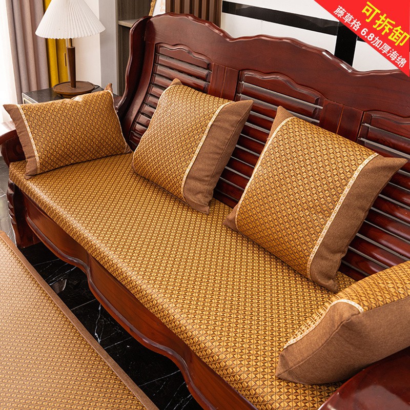 여름 소파 쿠션 등나무 매트 여름 중국 스타일 레드 솔리드 우드 소파 쿨 매트 베이 창 바닥 쿨 매트 스폰지 쿠션스토어 가기