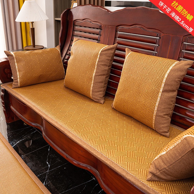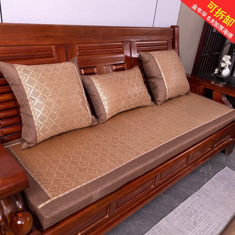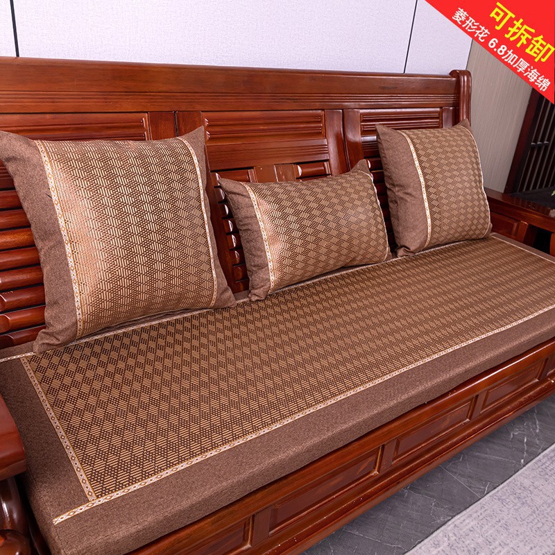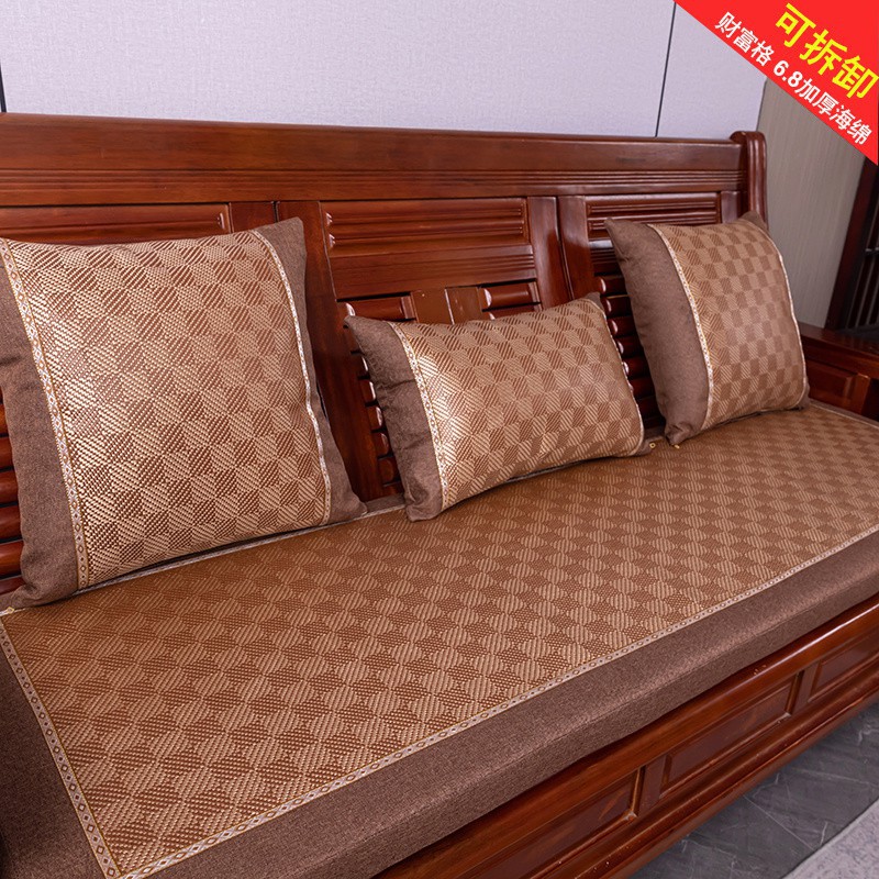 여름 소파 쿠션 등나무 매트 여름 중국 스타일 레드 솔리드 우드 소파 쿨 매트 베이 창 바닥 쿨 매트 스폰지 쿠션
