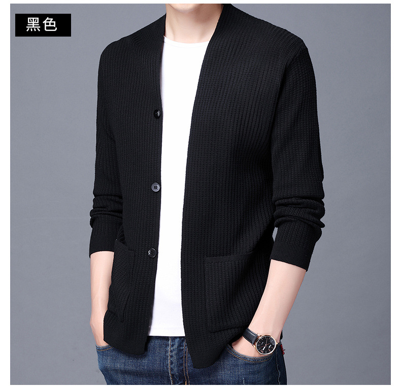 니트 카디건 스웨터 남자 봄과 가을 진짜 포켓 탑 젊은 잘 생긴 중간 길이의 유행 한국 캐주얼 재킷