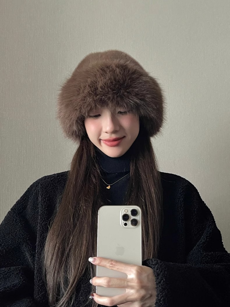 2024 새로운 겨울 모자 여성의 가을과 겨울 두꺼운 마오 마오 가짜 모피 어부 모자 따뜻한 단색 몽골 모자스토어 가기