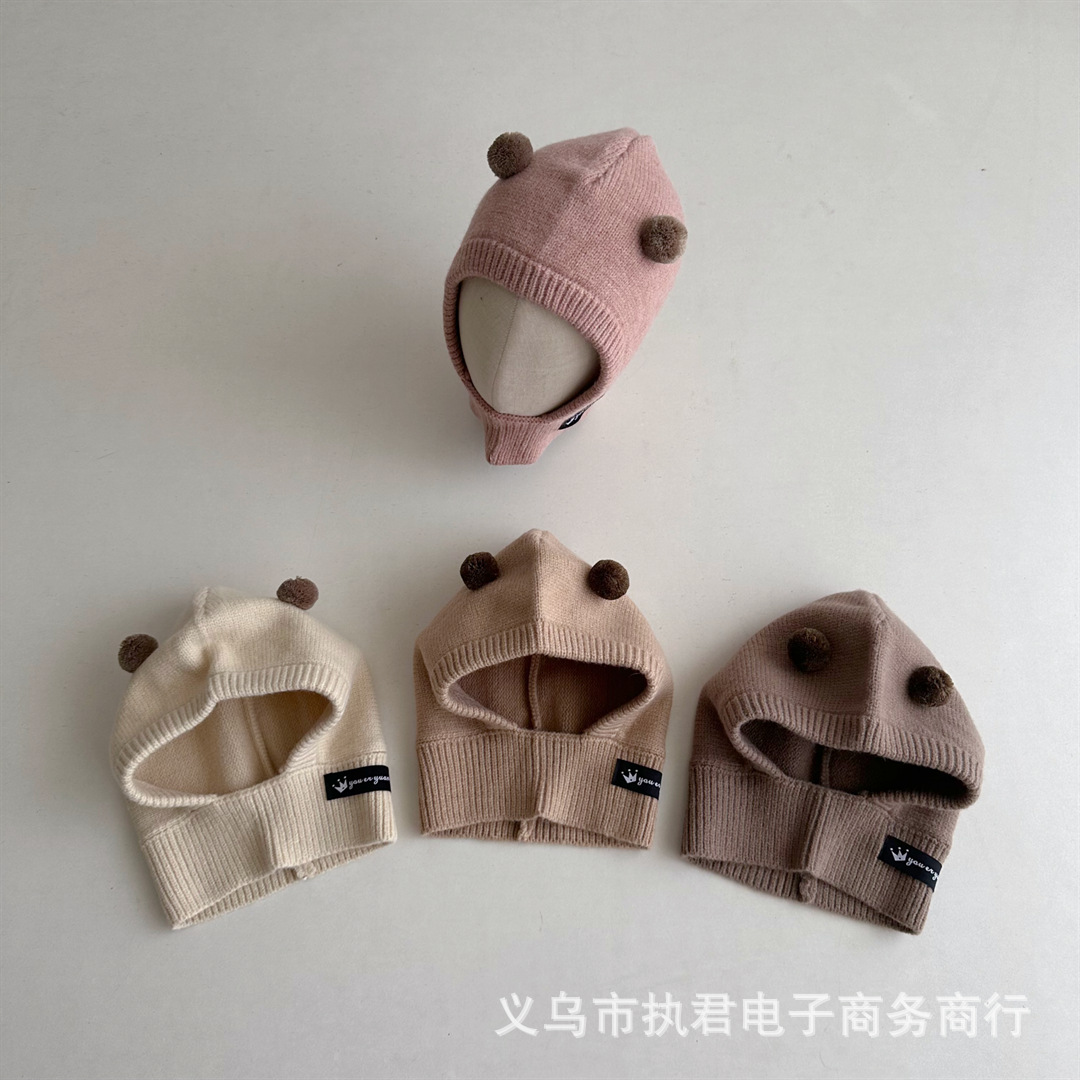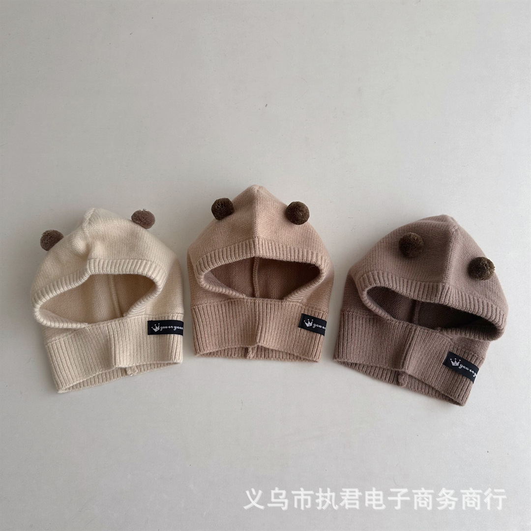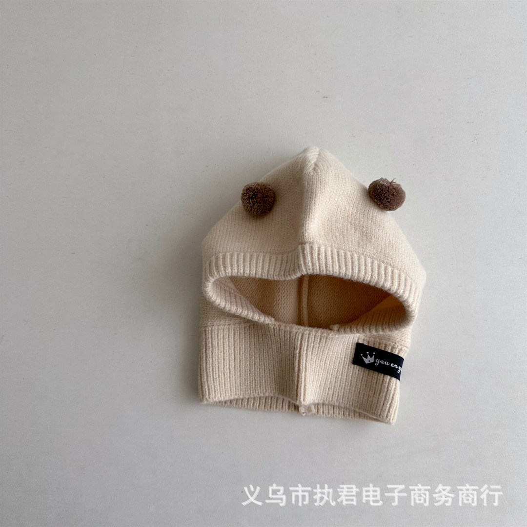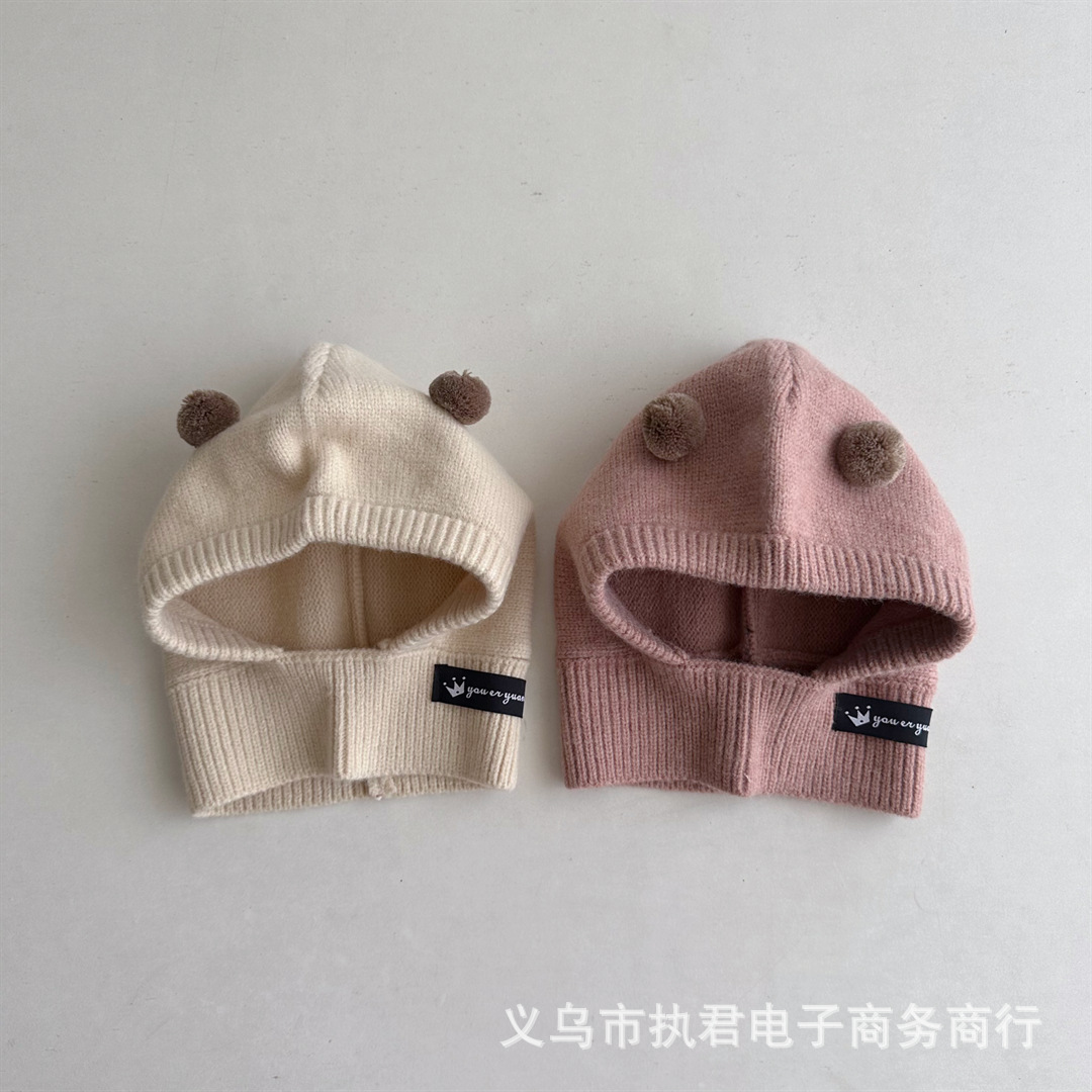 아기 모자 스카프 통합 니트 모자 따뜻한 귀여운 슈퍼 귀여운 더블 볼 아기 울 캡 트렌디스토어 가기