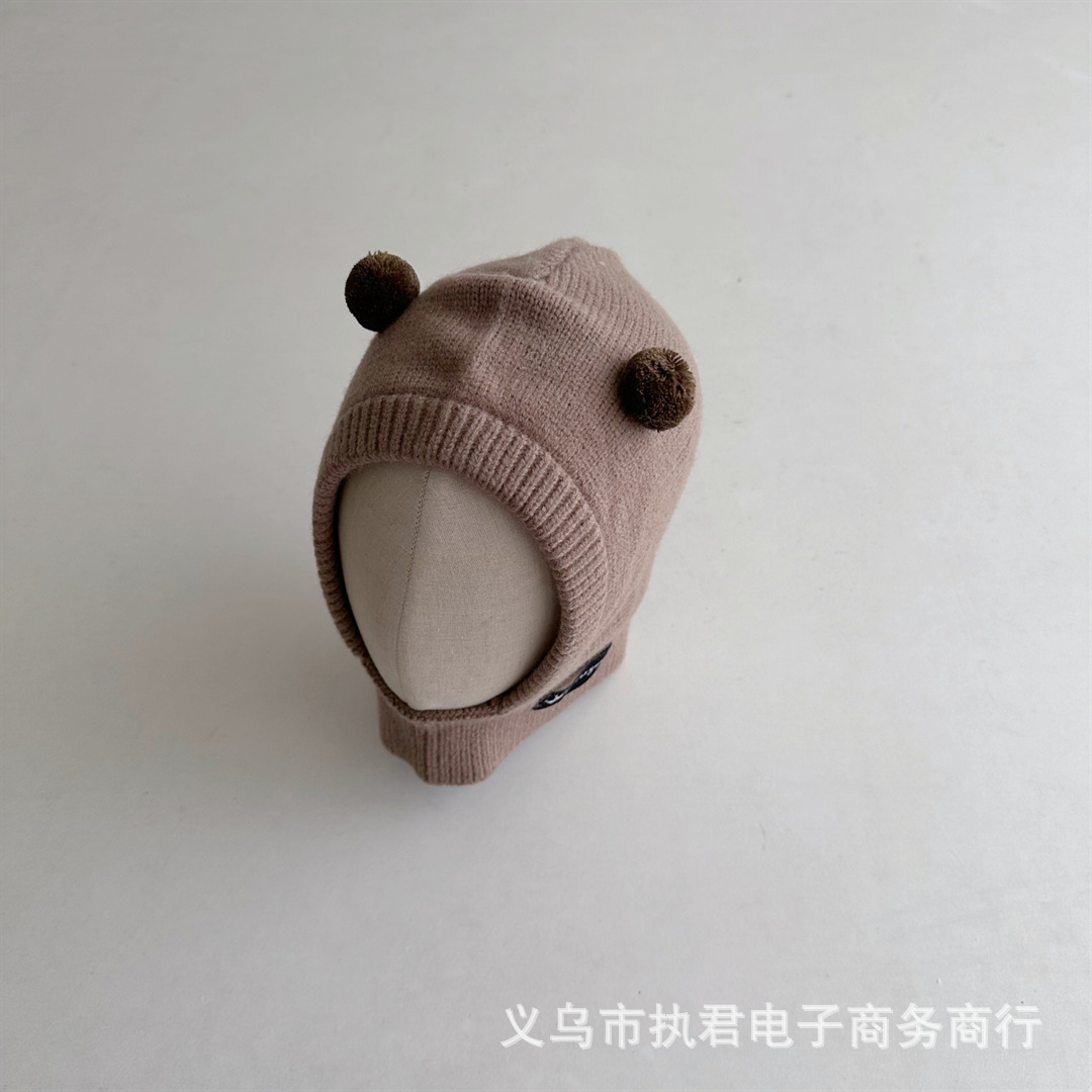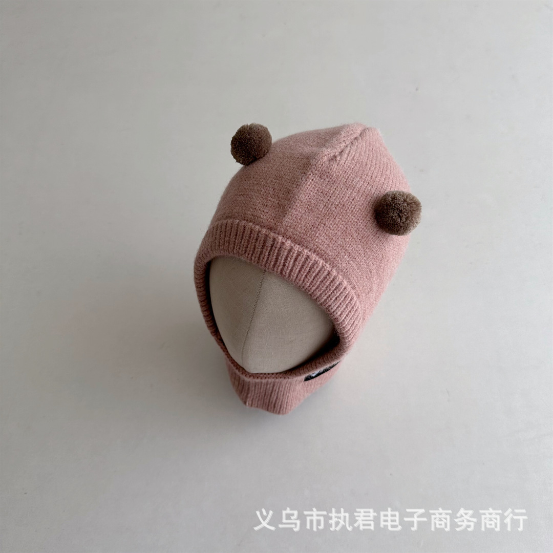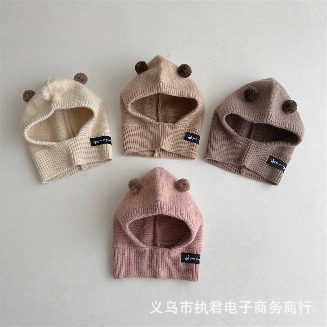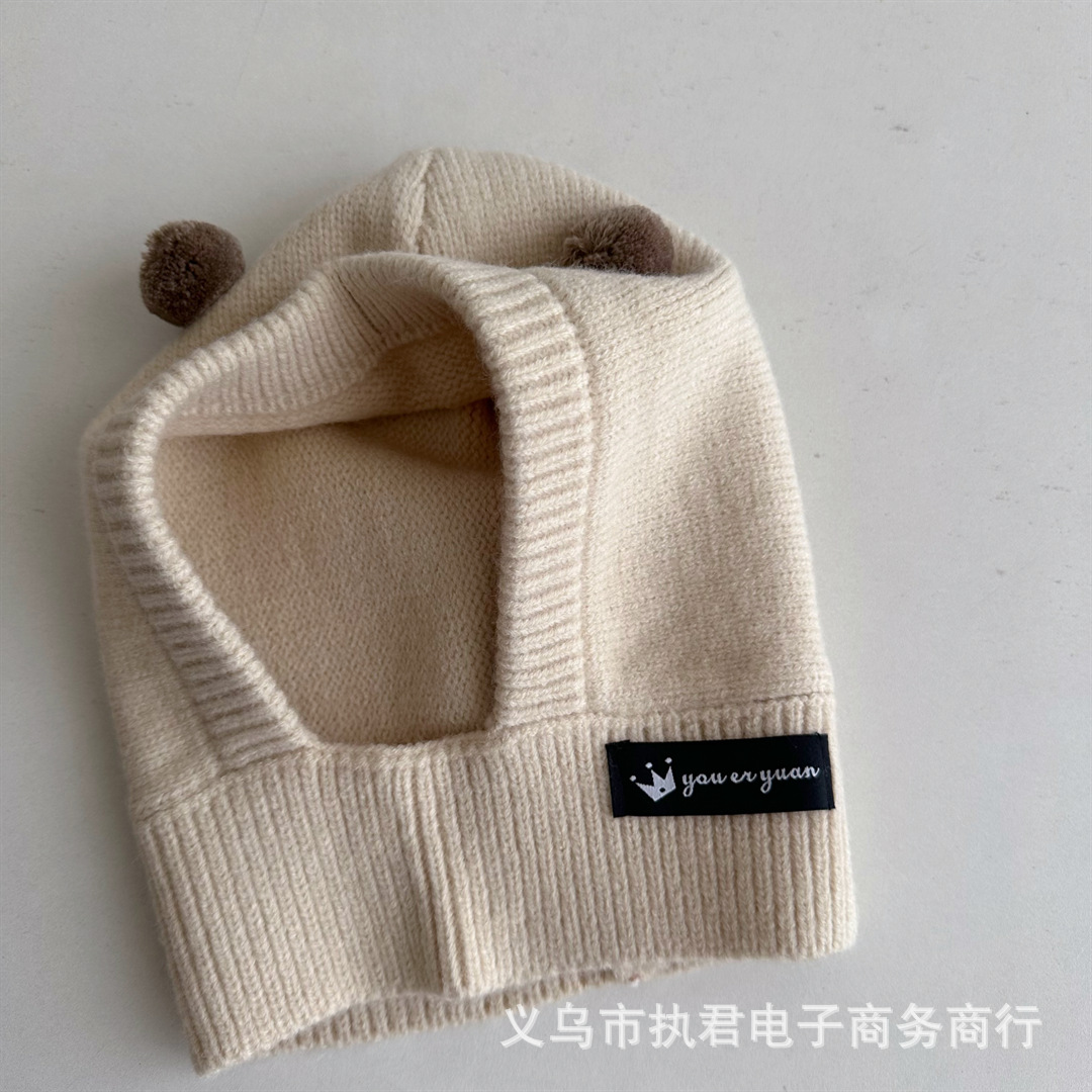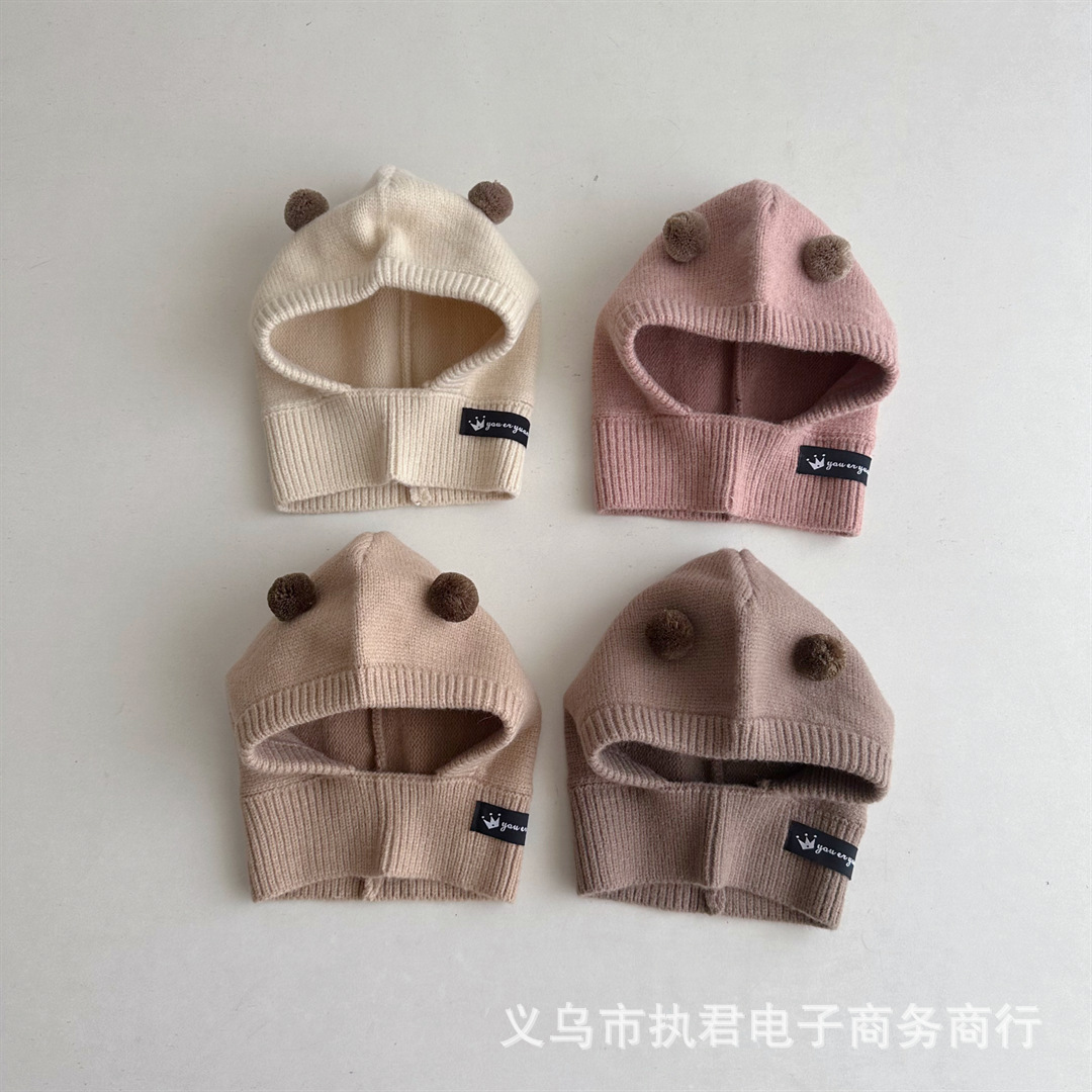 아기 모자 스카프 통합 니트 모자 따뜻한 귀여운 슈퍼 귀여운 더블 볼 아기 울 캡 트렌디스토어 가기