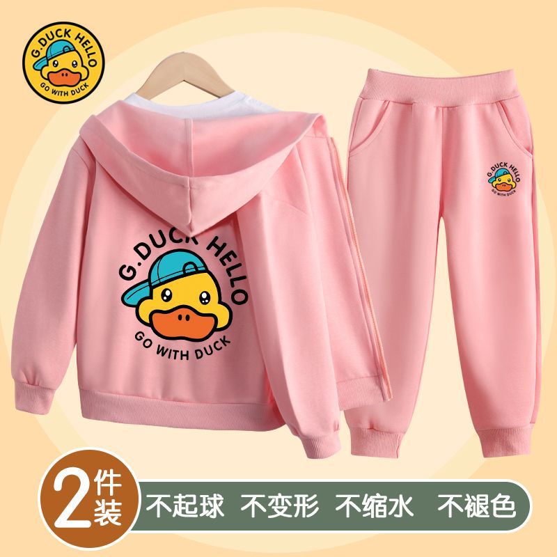 노란 오리 폭발 봄과 가을 소녀 세트 2024 새로운 긴 소매 서양식 옷 가을 착용 운동복 2 피스 세트