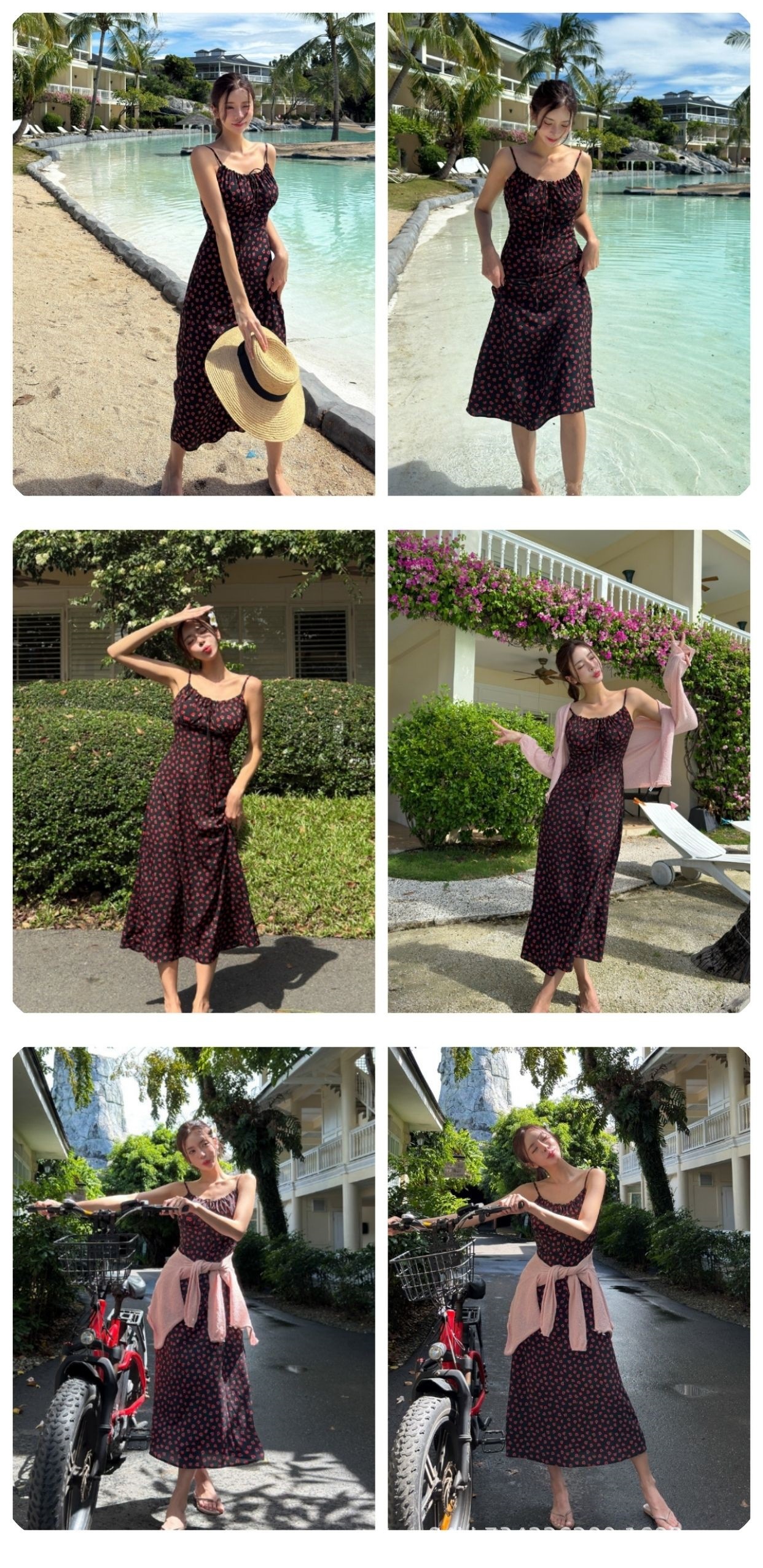2025 여름 프렌치 스타일 신상 우아한 플로럴 슬립 드레스 튜브탑 무릎길이 해변 휴가용 한국 스타일 롱 드레스스토어 가기