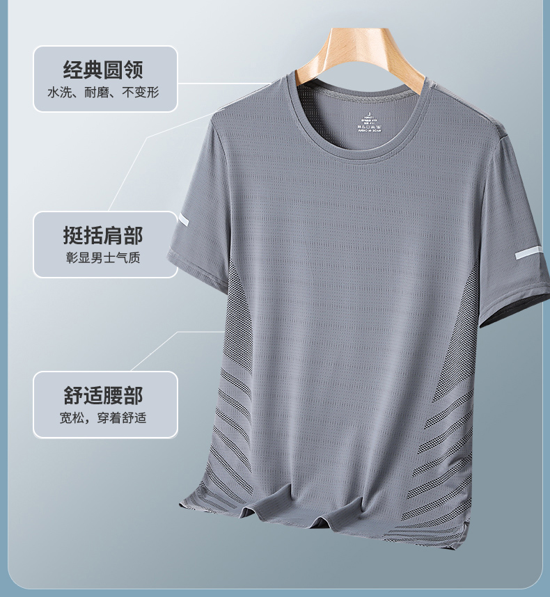 시원한 통기성 반팔 티셔츠 남자 중년 여름 아이스 실크 크루 넥베이스 셔츠 캐주얼 탑 티셔츠 입소문 추천스토어 가기