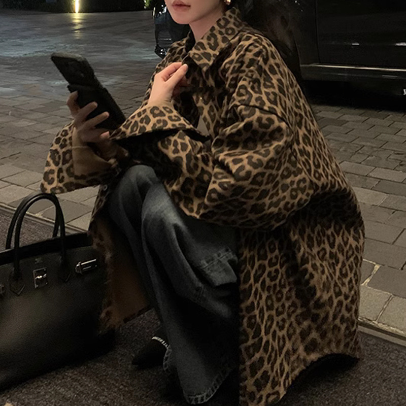 레오파드 무늬 코트 여성용 가을 아메리칸 스타일 레트로 캐주얼 루즈 올 매치 프로필 재킷 틈새 디자인 센스 탑스토어 가기