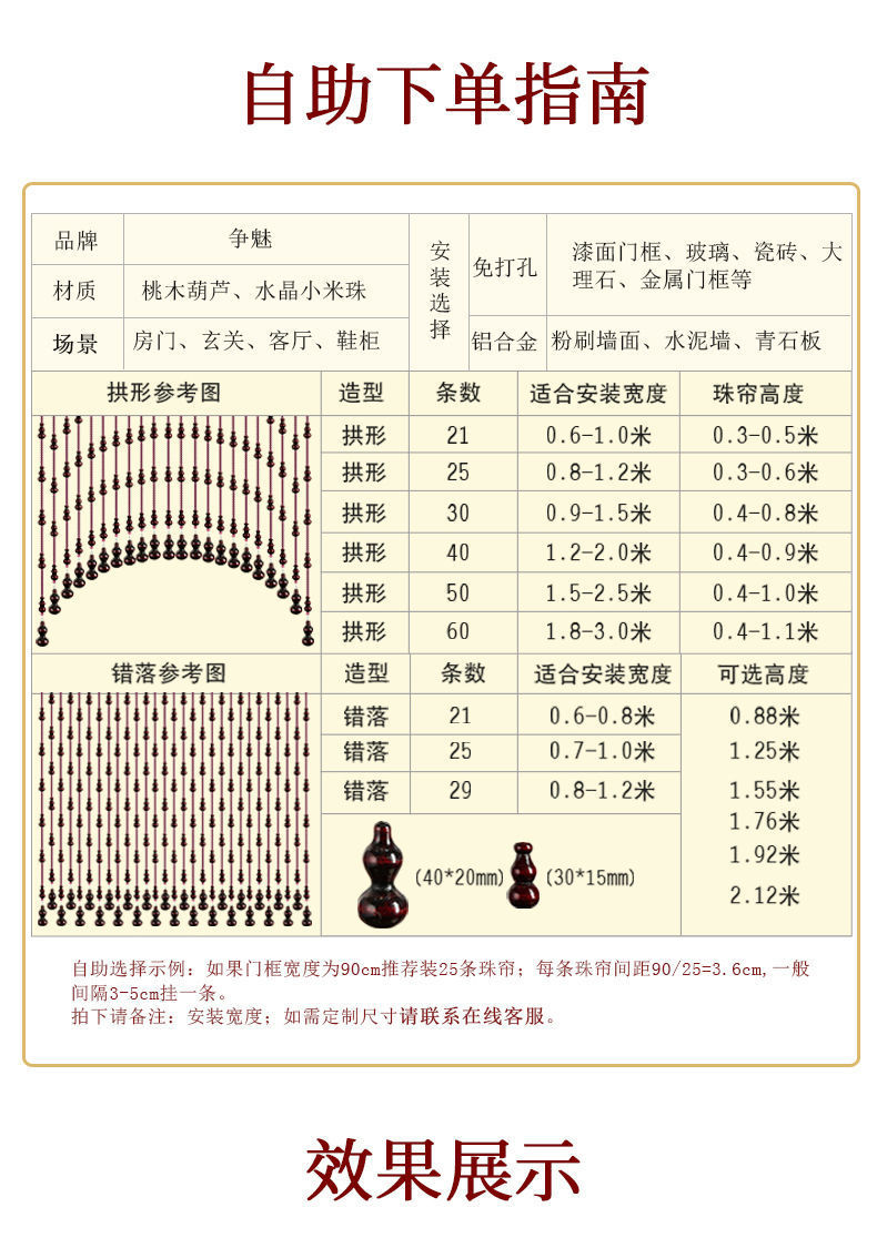 복숭아 나무 조롱박 문 커튼 유리 구슬 커튼 중국식 거실 파티션 커튼 입구 욕실 침실 통로 가정용 커튼