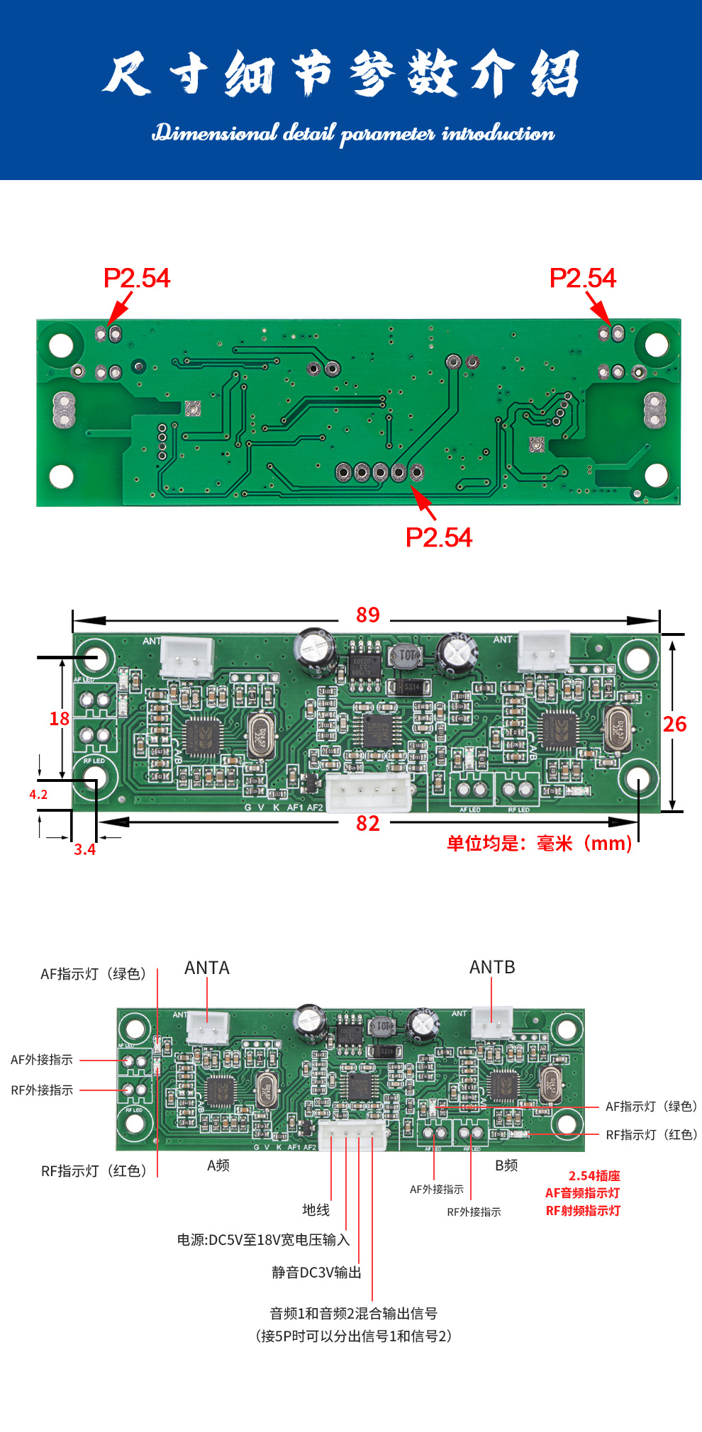 1 대 2 무선 마이크 모듈 UHF FM 마이크 수신 U 섹션 전력 증폭기 사각형 스피커 PCBA 회로 기판스토어 가기