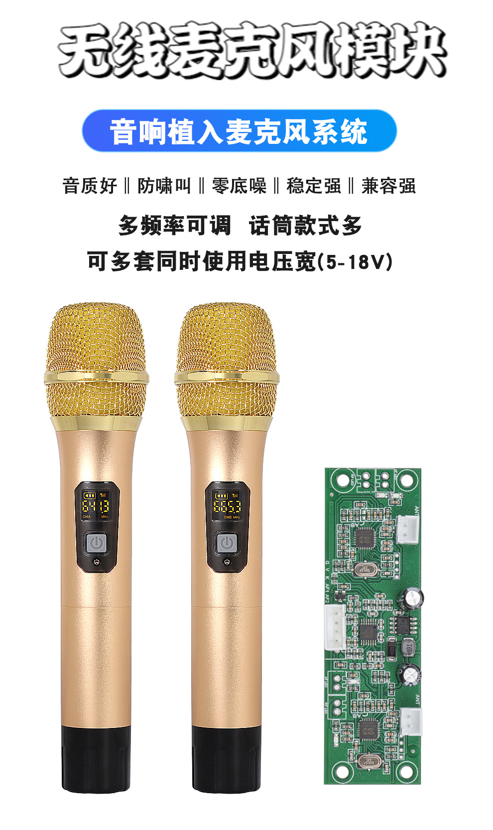 1 대 2 무선 마이크 모듈 UHF FM 마이크 수신 U 섹션 전력 증폭기 사각형 스피커 PCBA 회로 기판