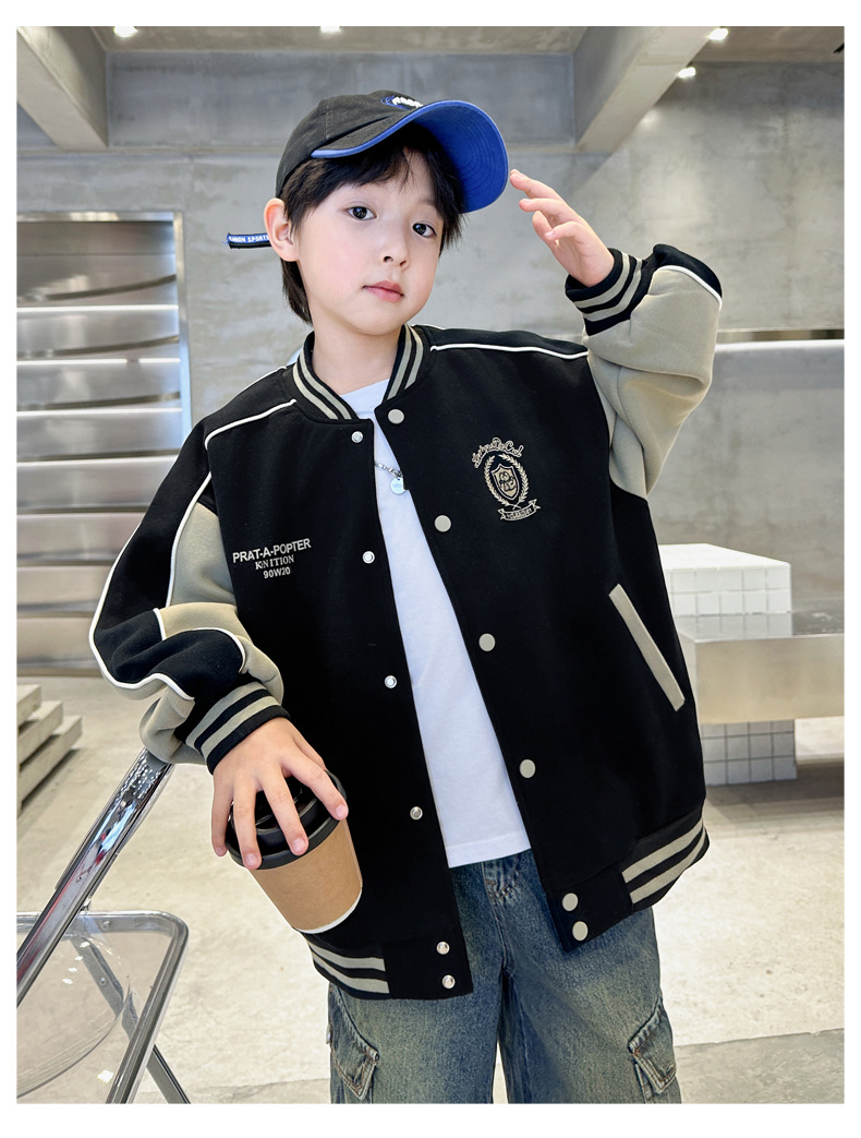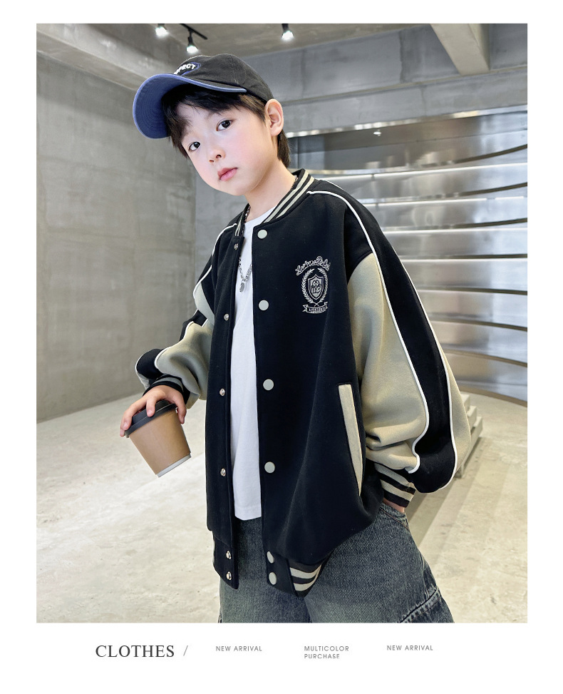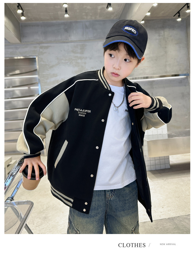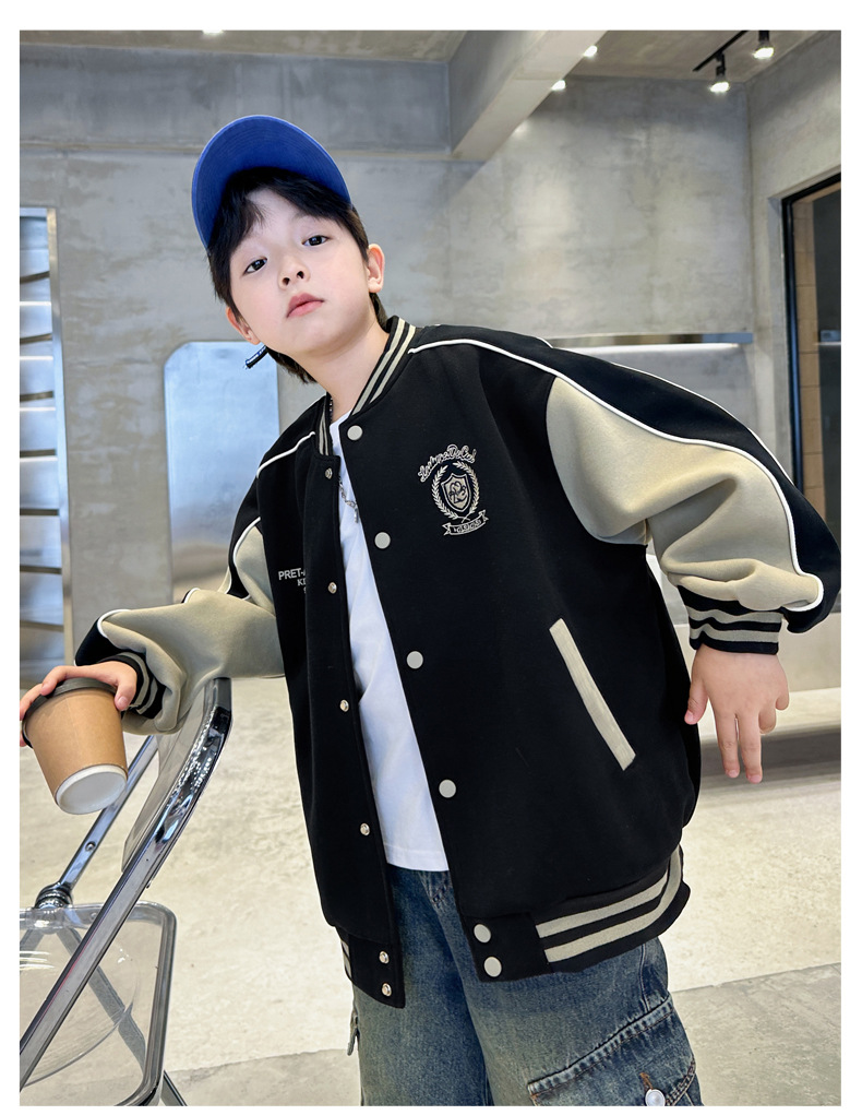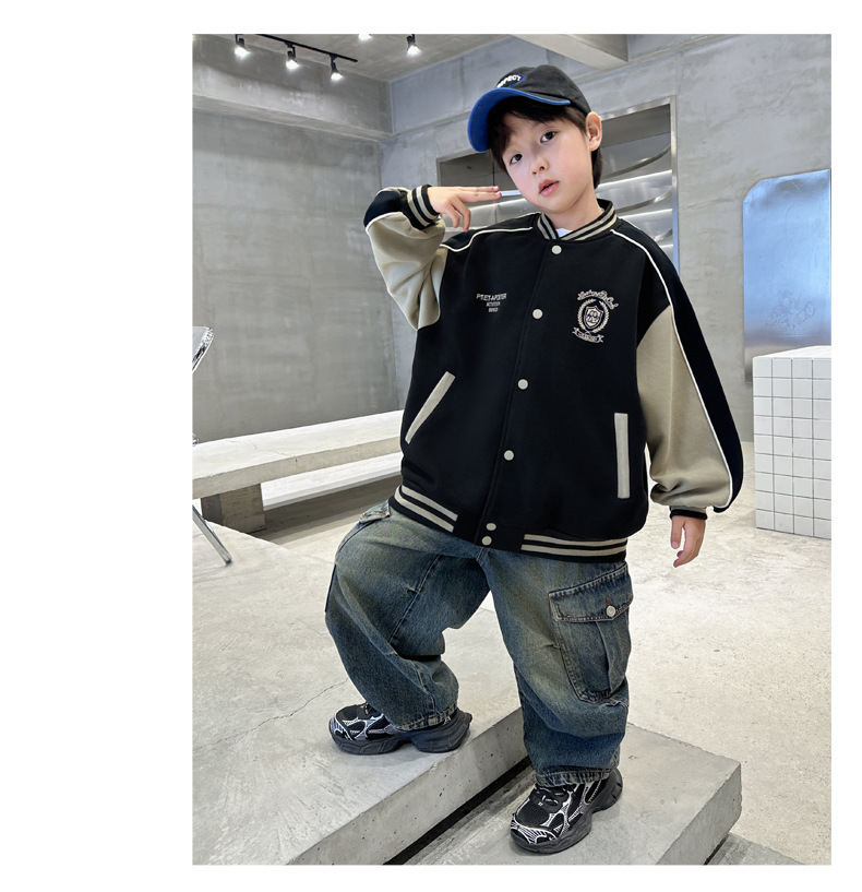 어린이 코트 2024 년 봄과 가을 새로운 도착 중다 소년의 세련된 소년 가을 야구 세트 가을 재킷스토어 가기